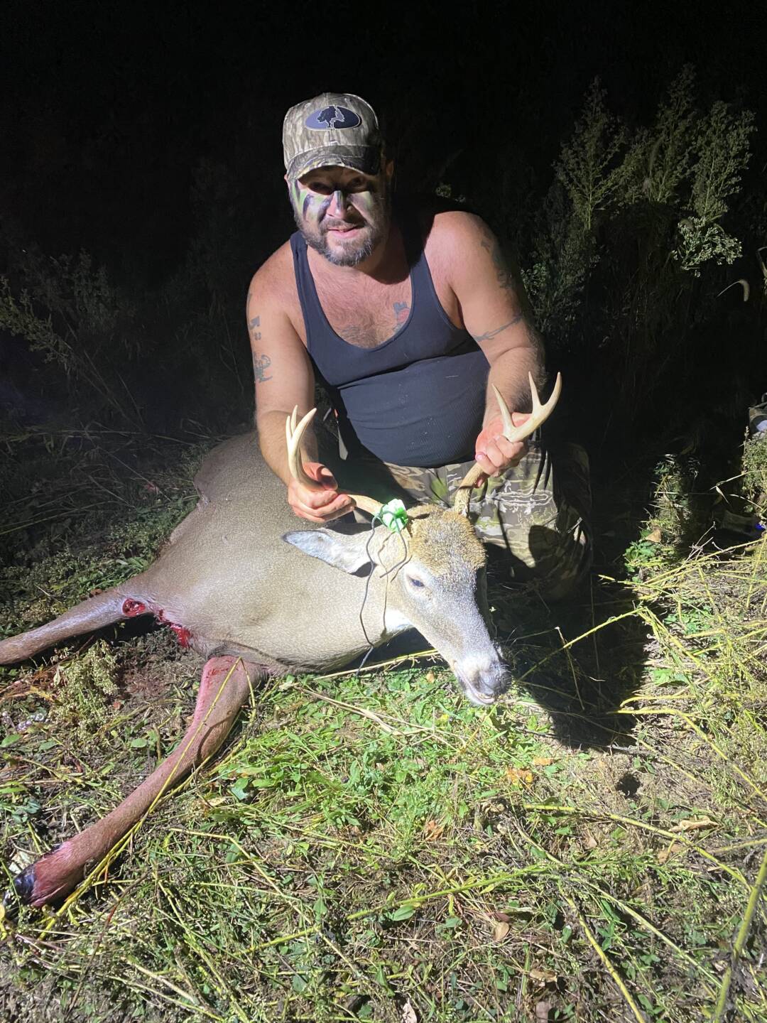 I got extremely lucky with this deer. He came out of the tall grass at 7:00 and stepped into my food plot. After the shot and looking at the bolt I had a fletching cone off mid flight hitting the deer further forward than I wanted. Luckily the hit was enough to finish the job