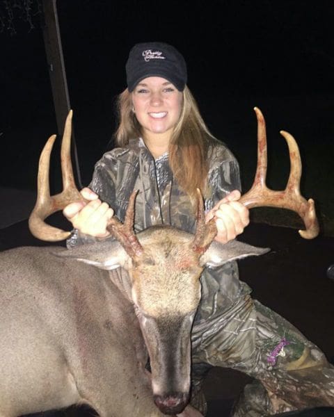 She has been waiting for 2 years to shoot her first deer cause she only wanted a buck first. Hasn’t seen one close enough to shoot. She was mad because she couldn’t go Saturday morning to an island to hunt with family friends. That morning family friend shot a 8 point. So Saturday night she decided she would just go sit in the backyard but she was waiting for Sunday cause it was her turn to go to the island. She figured she would never get one in her backyard because she sat out there for 2 years with nothing. Well this night she got a nice buck!!!