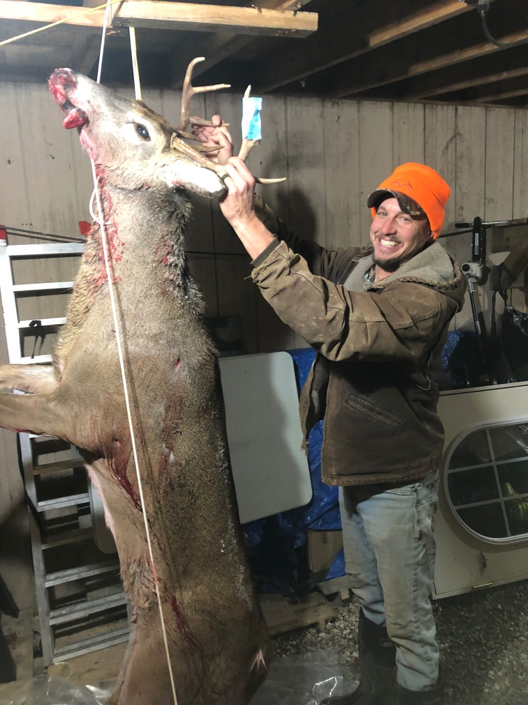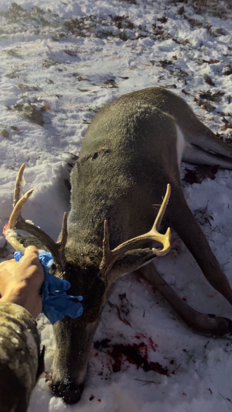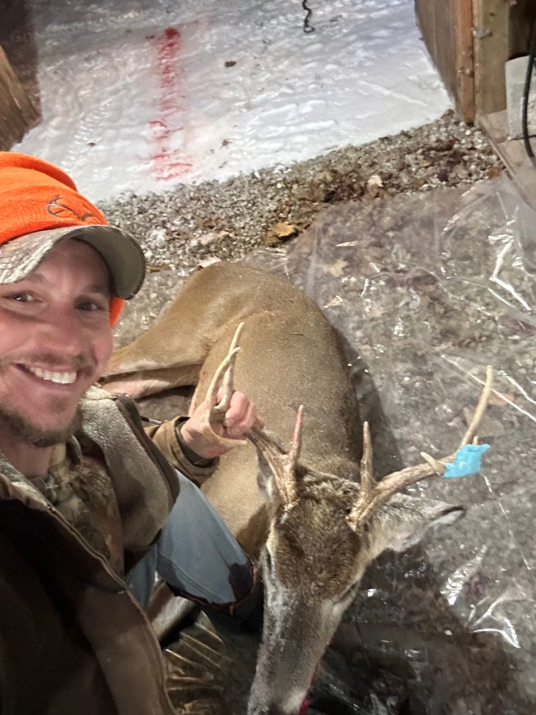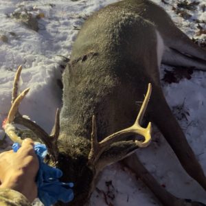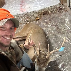 I Went out and sat for a Evening sit in my pop up blind . Switched it up from my ladder stand do to the weather snowing.and supper windy . He popped out with a few does . I waited for him to turn Pow dropped him @ 30yards . 8pt shot St clair county . Tagged OUT !!