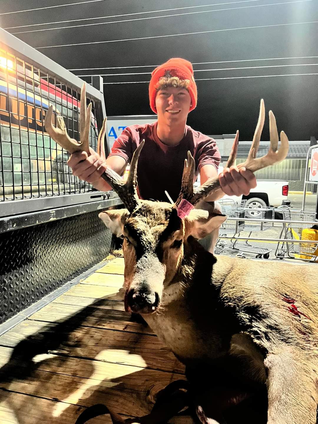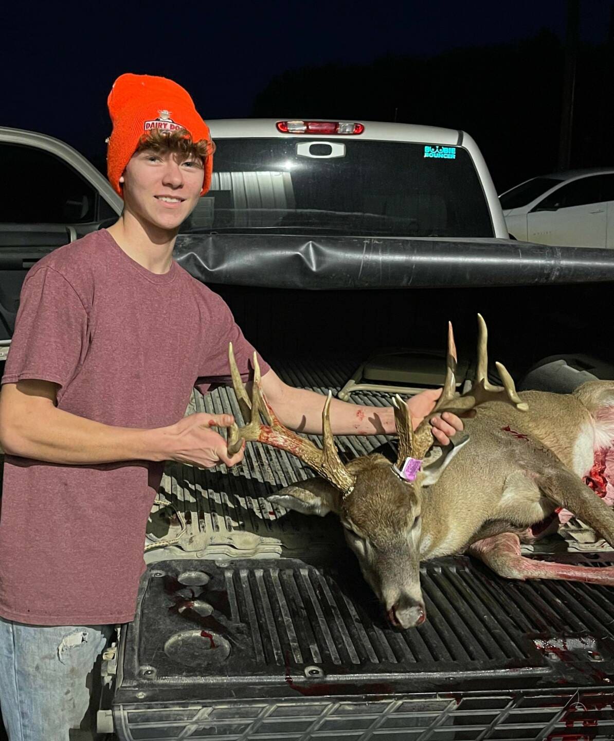 I sit with my grandpa every opening day, and have for the last 10 years. At around 4:30pm we seen this buck coming through the woods. I took a shot and he dropped in his tracks.