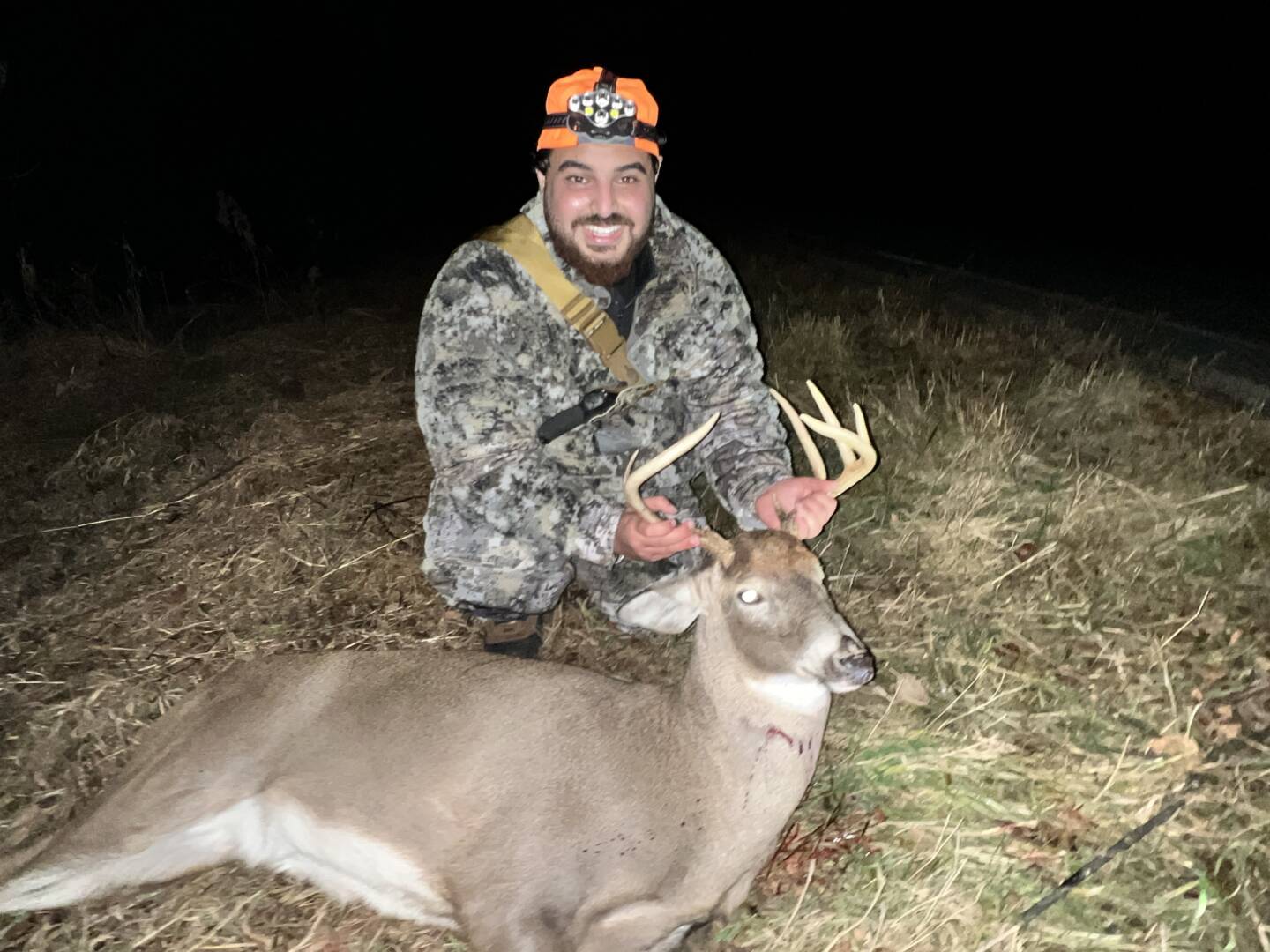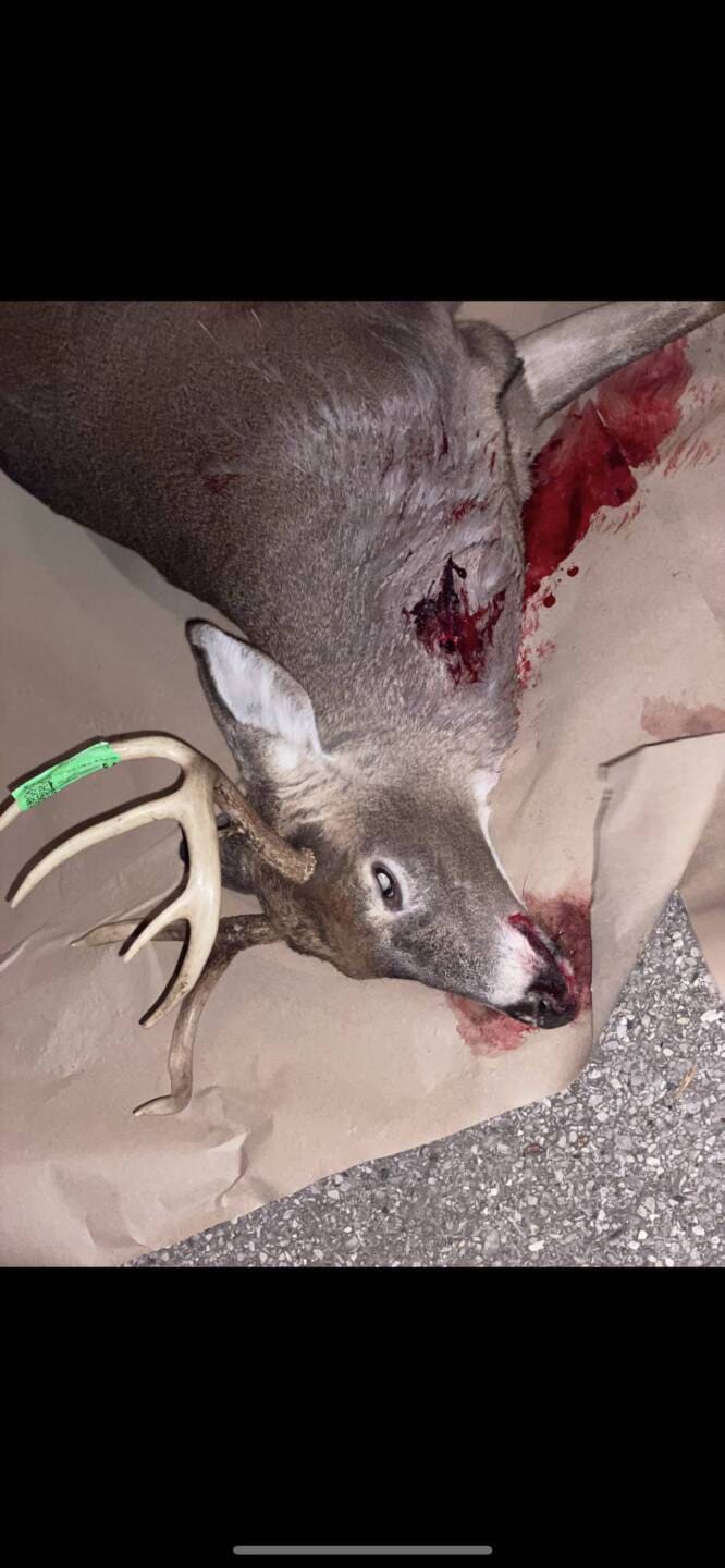 This was the only buck I got on camera. He was a weird 7 point with 5 on the right side and 2 on the left. The property I was hunting in had pretty bad terrain. So it wasn’t an option to track. Walked in on me around 5:14 pm and was standing behind some tangly bushes. Knowing tracking wasn’t an option I decided to take a neck shot at 15 yards with my 450 bushmaster shooting through the bushes. The deer ended up doing a backflip and dropping in his tracks. It was an easy drag to the truck.