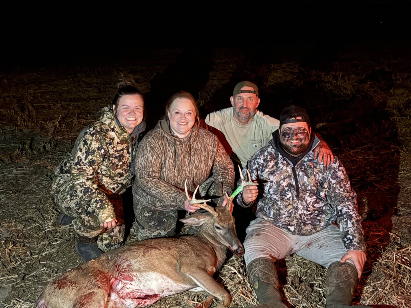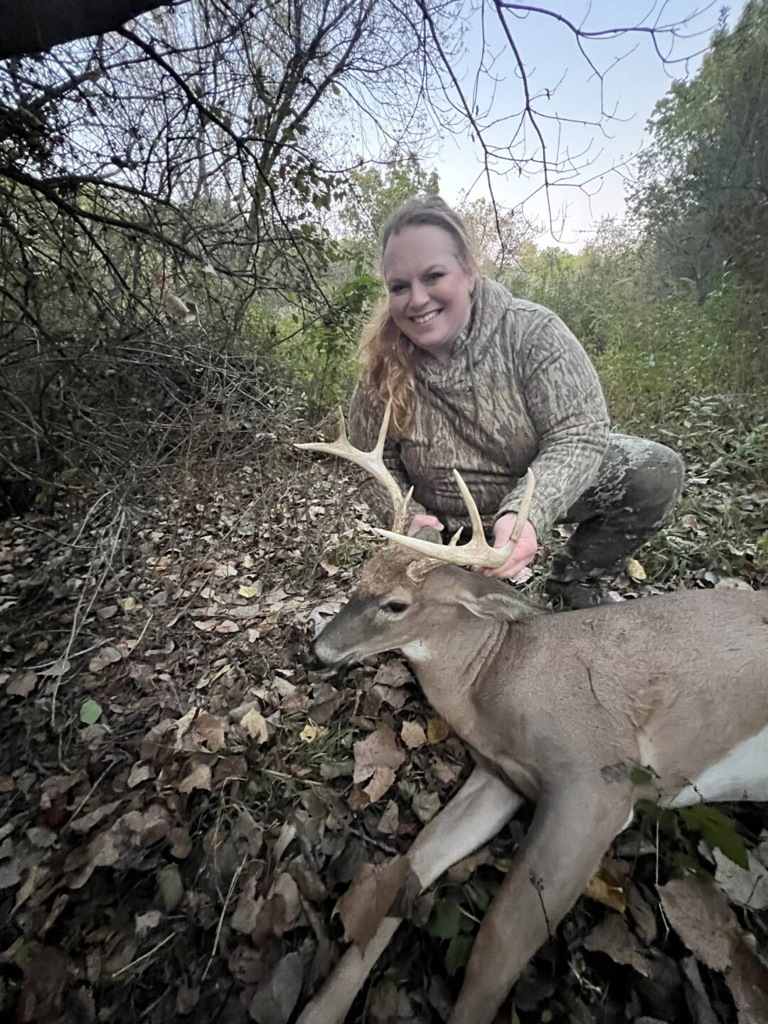 It was the first hunt of 2024 and at 6:44 he stepped out of the thick woods and brush into my shooting lane without seeing or hearing him coming . A perfect 30 yd double lung shot and he only went about 40 yds . My biggest buck ! Years of patience on taking a big buck finally paid off !