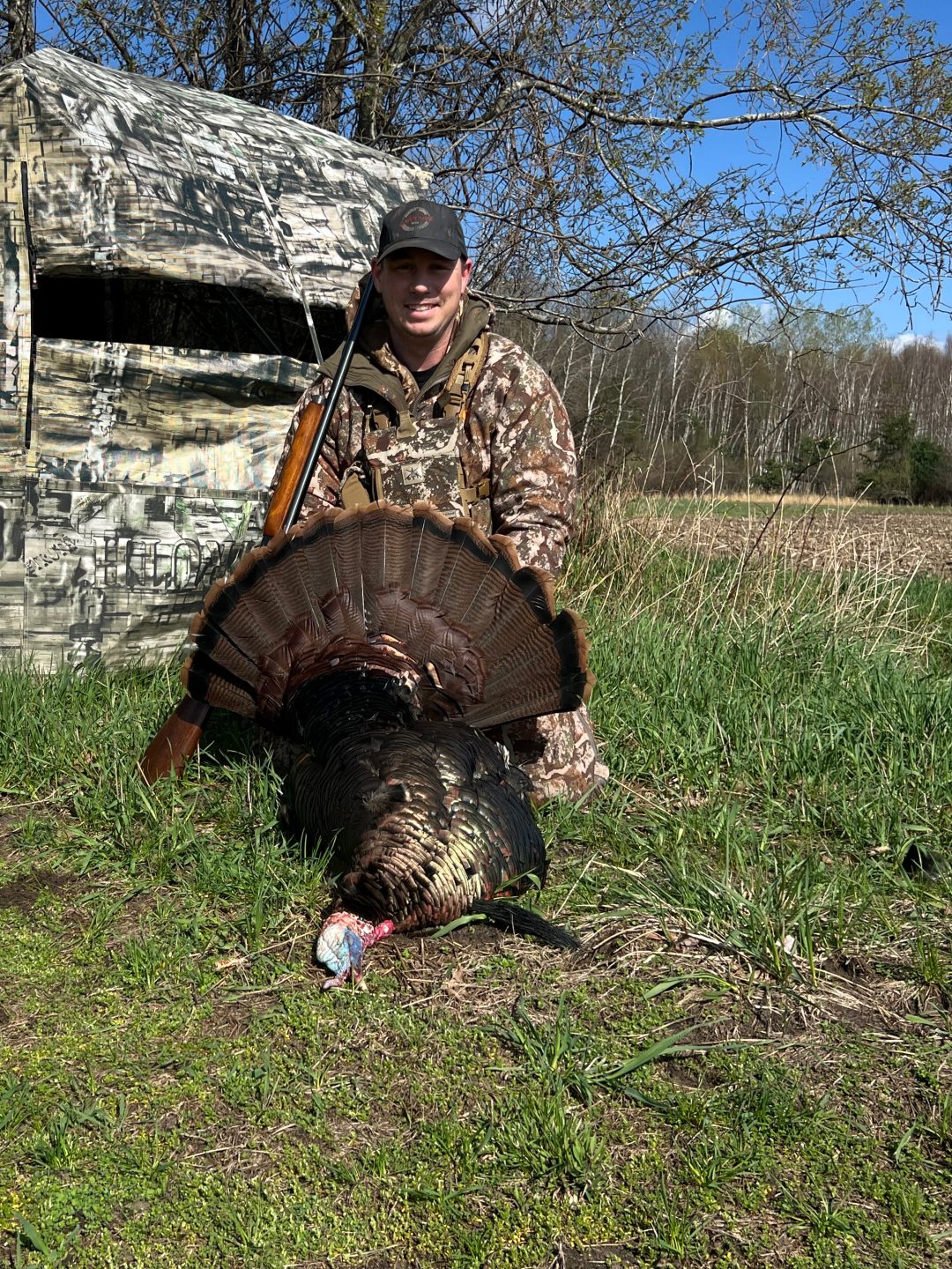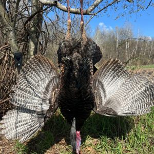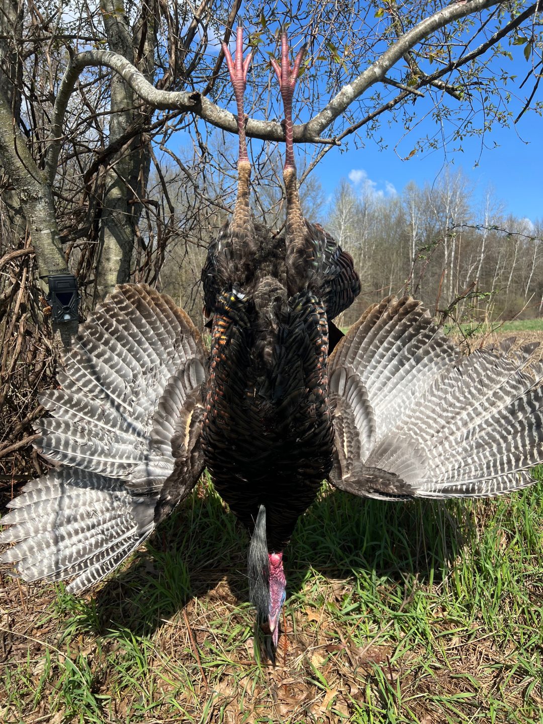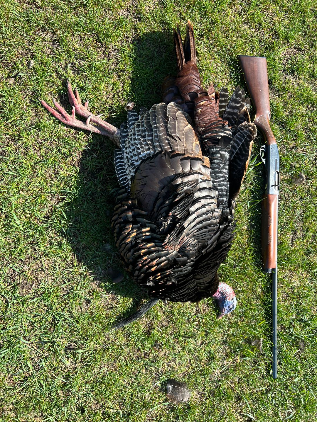 Spent all morning surrounded by birds, none of our target toms were the group. We unloaded the guns to go get some lunch and a group of hens popped out of the woods bringing a lone tom. He bred one of the hens outside of 60 yards and I got a cool video. Hens did their part and brought Mr tom to me (both of us with a smile ear to ear) rest is history!