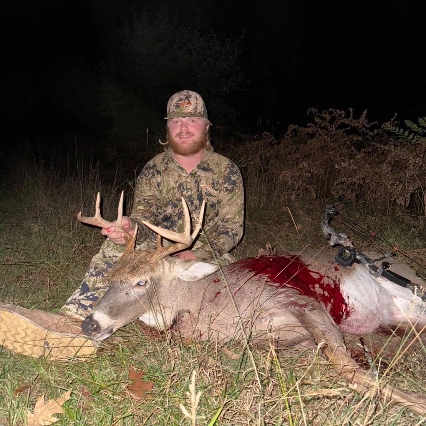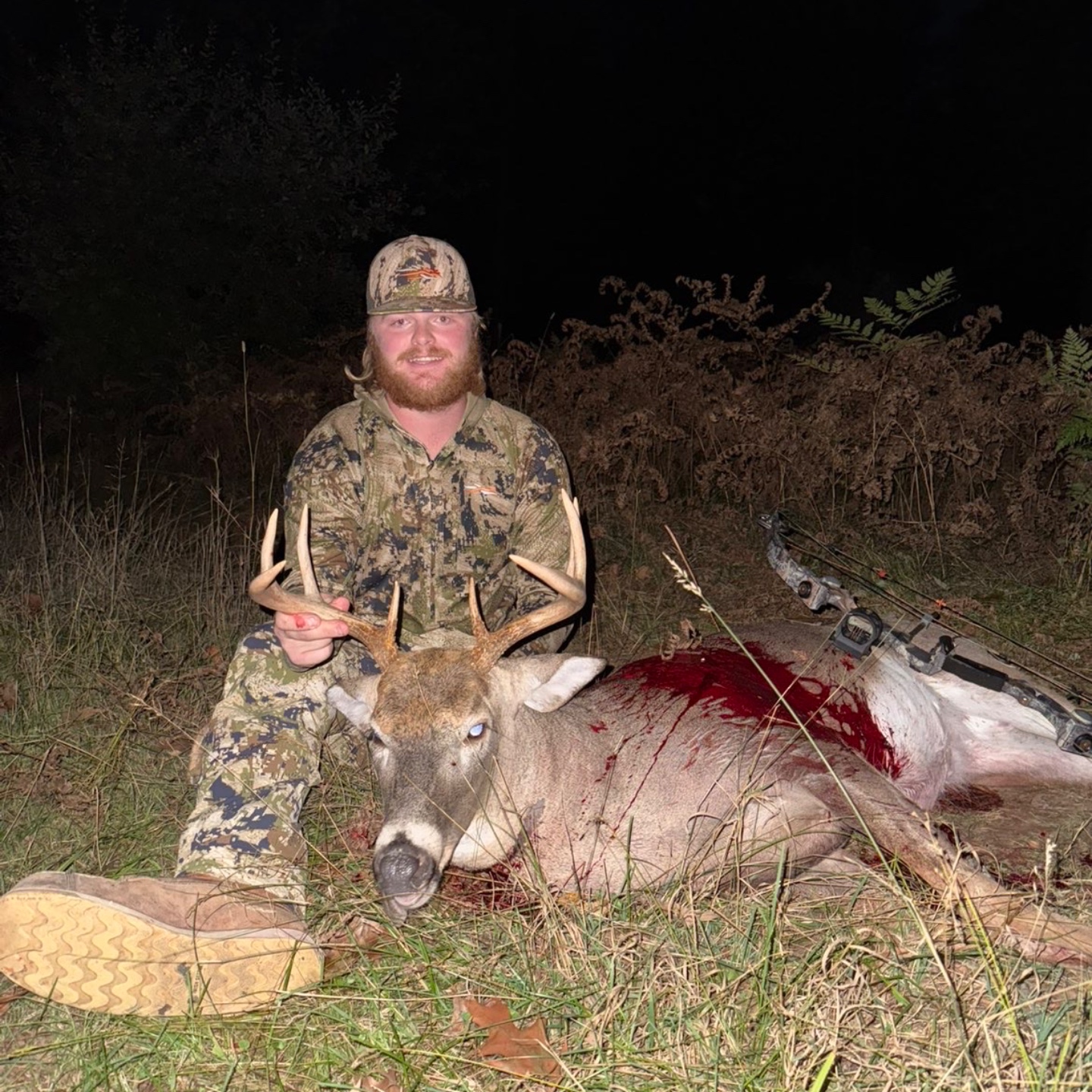 Deer cam in straight down ind after I watched him get up outta his bed he worked into 30 yards started throwing his nose up smelling me so I knew what had to be done drew back letter fly and he didn’t go 20 biggest buck to date first opening day buck