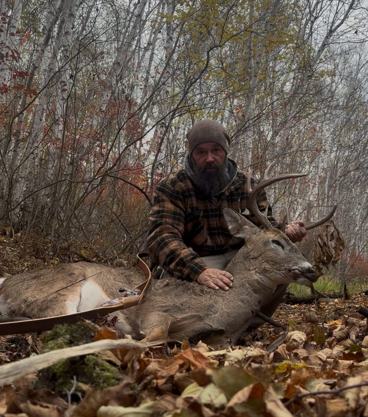 Been waiting for the right wind to hunt a spot on public. Finally went in. First sit had a bunch of doe around me and caught this 8 point cruising. Shot him with my 1959 bear Kodiak. Piled up around 100 yards.