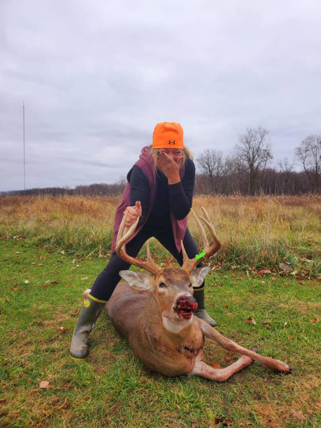 First hunt. She’s quite happy about this tank as you can see. And this isn’t the only buck she’s looking for. She’s single. Lol