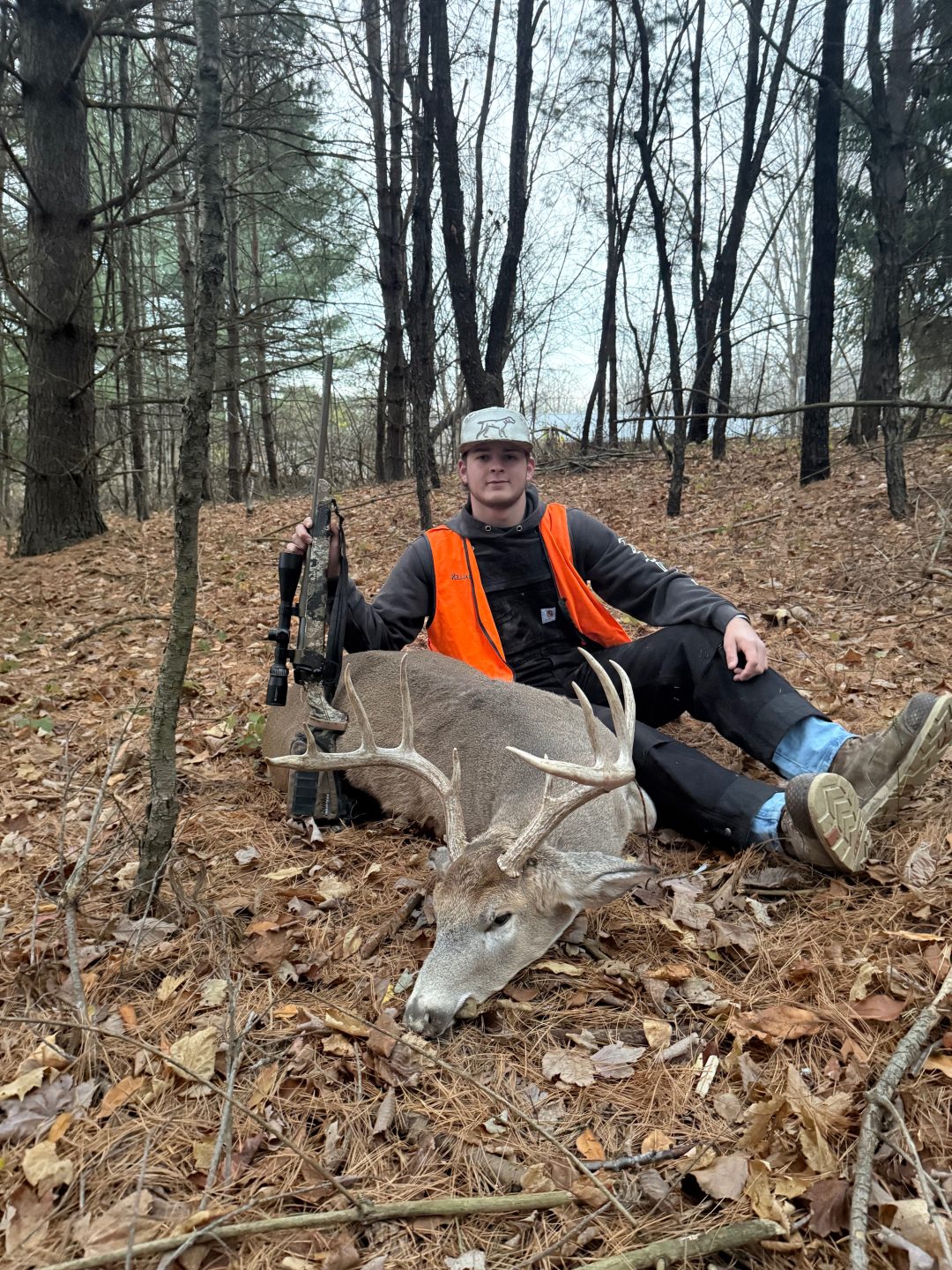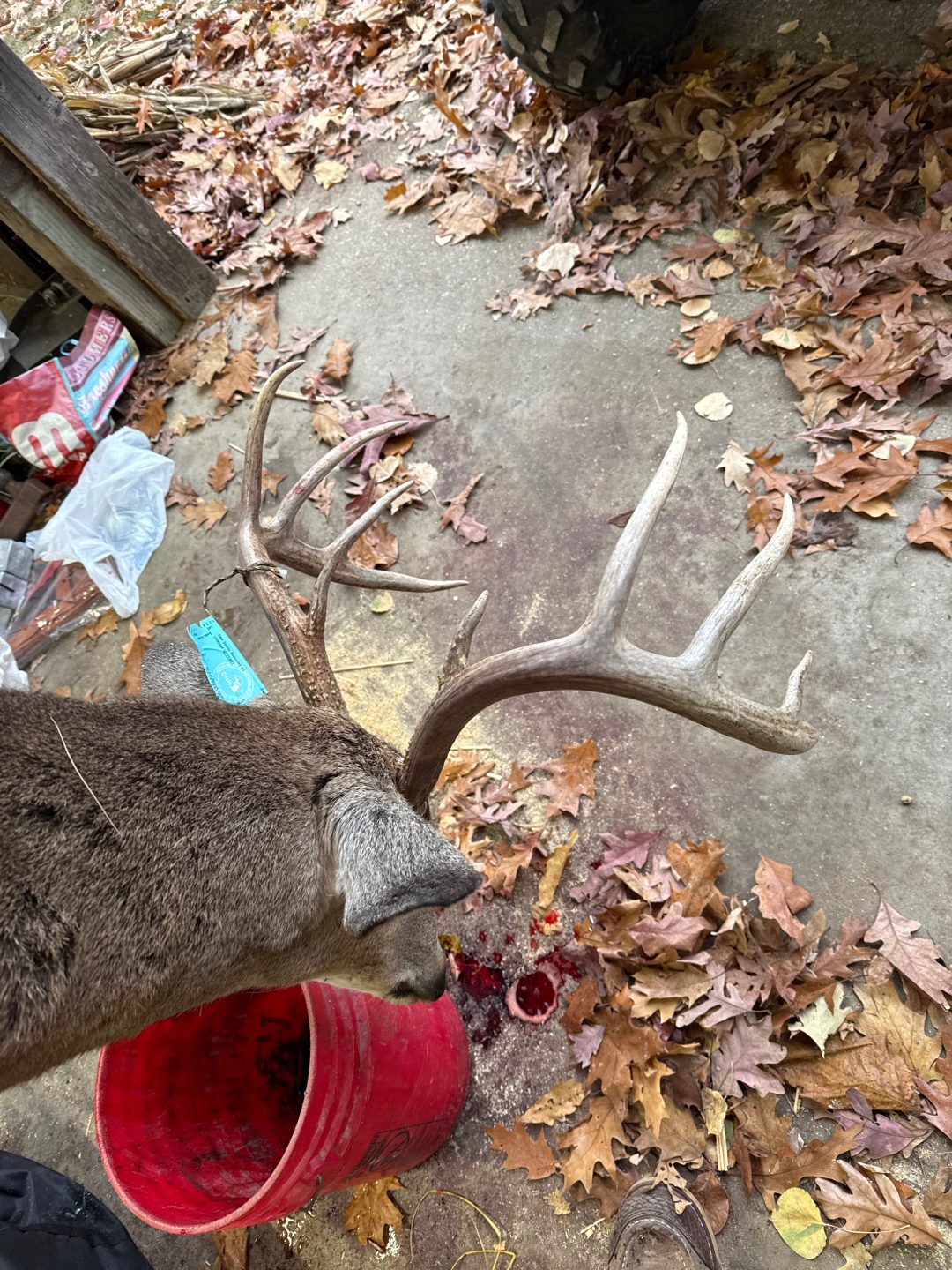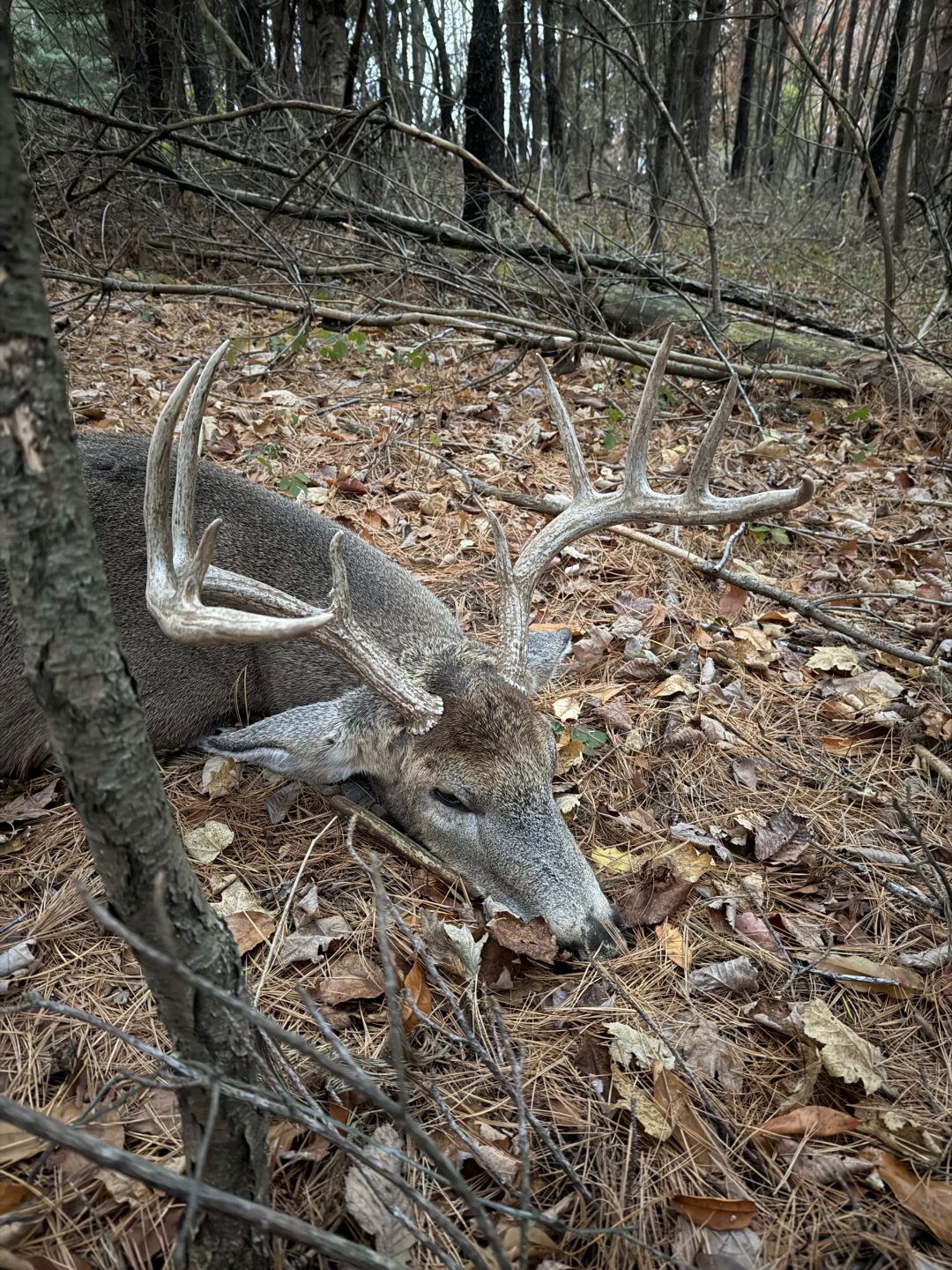 Wasn’t supposed to start work til 8 today so figured I’d go sit behind the barn for a half hour before work. It’s only a .5 acre swale hole but it holds good deer every year once the pressure from the neighbors hits. I heard bucks bumping does as soon as I got sat down up against a big pine but had no idea what they were until it cracked light. At about 7:15 I could tell there was two good bucks and mine being the biggest but couldn’t get a shot till about 7:25. He ran past at 40 yards with the doe, and I stopped him, shot and smoked him. He ran right at me to 20 yards and piled up. Extremely blessed to be able to chase these beautiful animals.