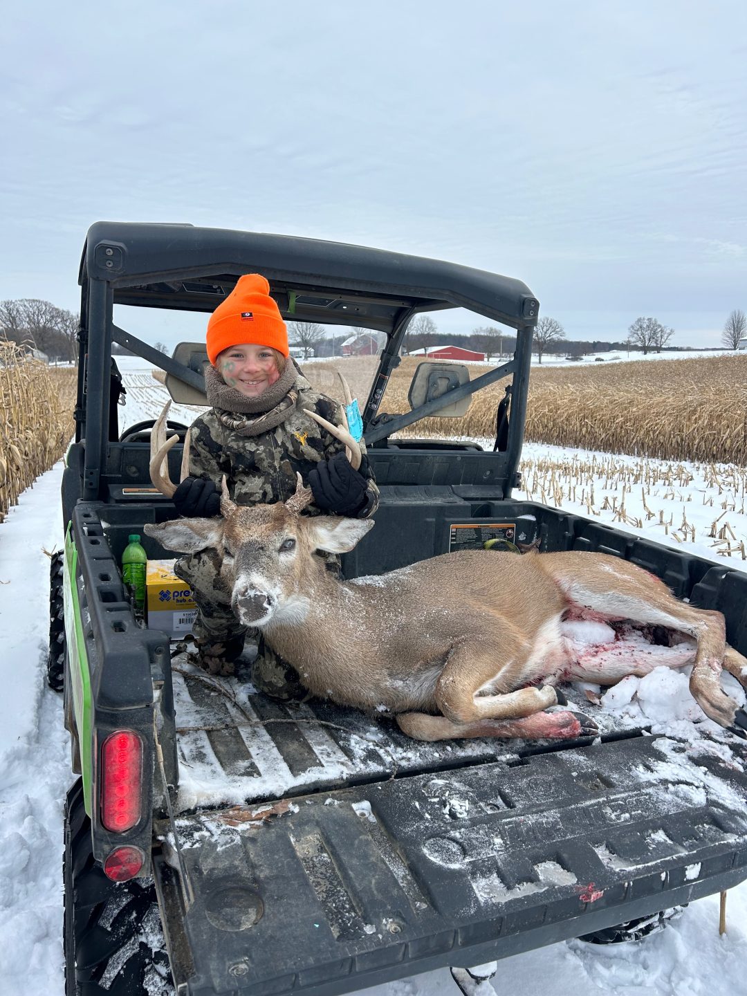 Decided to take the last opportunity for a buck during gun season. It was cold and windy but we had a nice blind with a heater. My daughter was running the gun. We had 4 bucks come out. 3 small and then this guy. He was broadside at 112 yards. He was a 10pt but broke off an antler. Absolutely beautiful 9pt! She is extremely proud and we are so blessed. Glory to God!