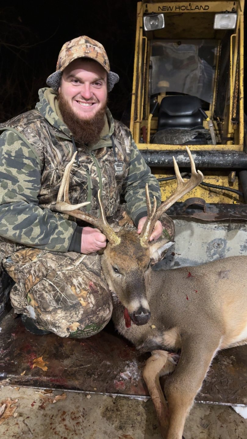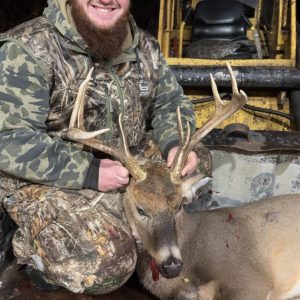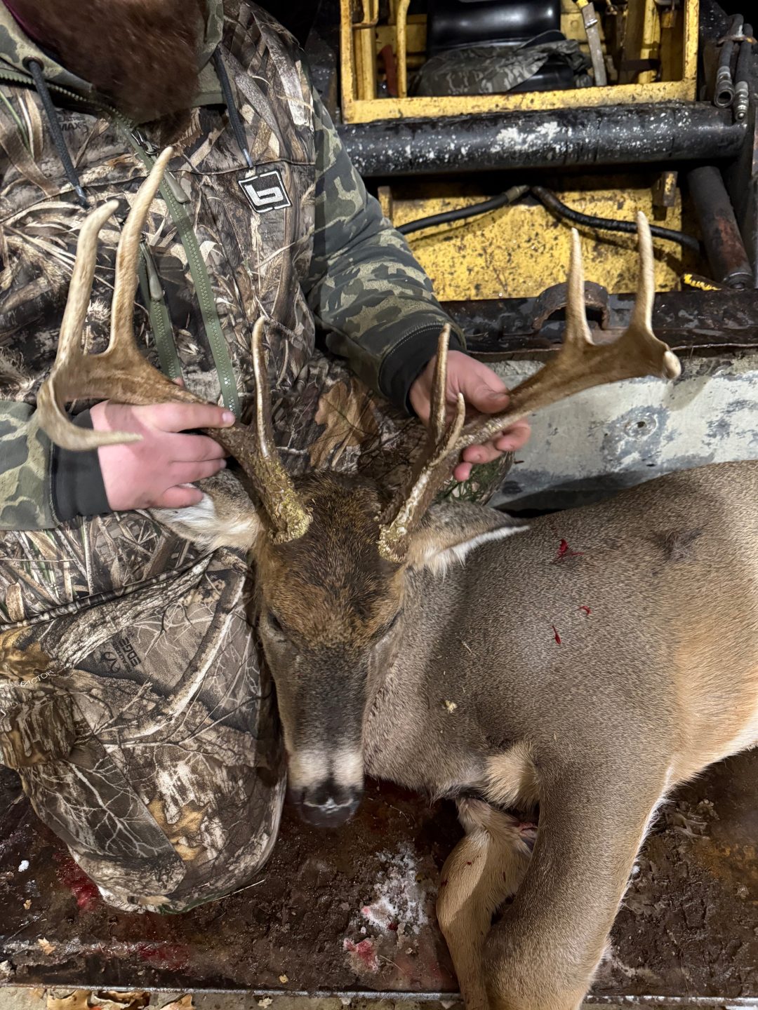 Kinda cool how it happened I hadn’t touched this spot all year because one of the guys that hunts out here sat only there last year and never shot even a doe so I scouted it this morning and there was scrapes and rubs everywhere and I found this giant rub on a cedar that I sat about 20 yards from on the ground tucked into some briars and wouldnt you know it about 10 minutes before shooting time he grunted while making a scrape and came walking straight towards that rub and I dropped him and when I went up to him he still had pieces of that cedar stuck in the base of his beams and his brow tines.