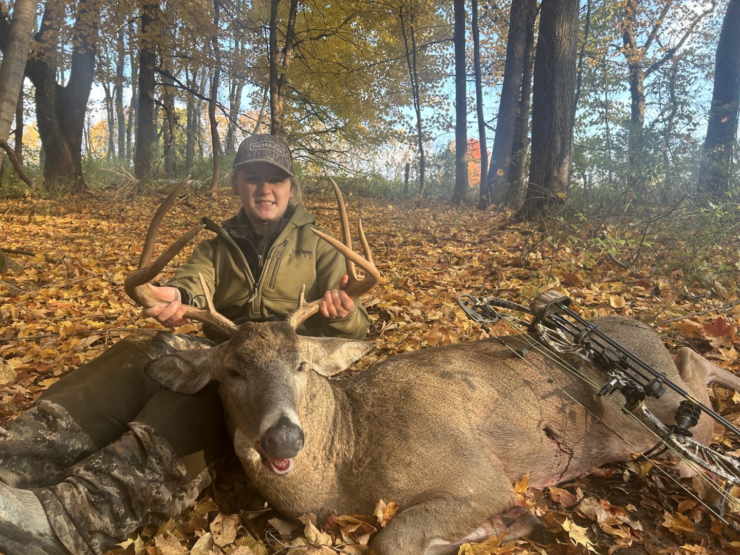 Avery 17 harvested this beautiful 7 point Sunday morning! Her patience paid off!! First buck with her compound.