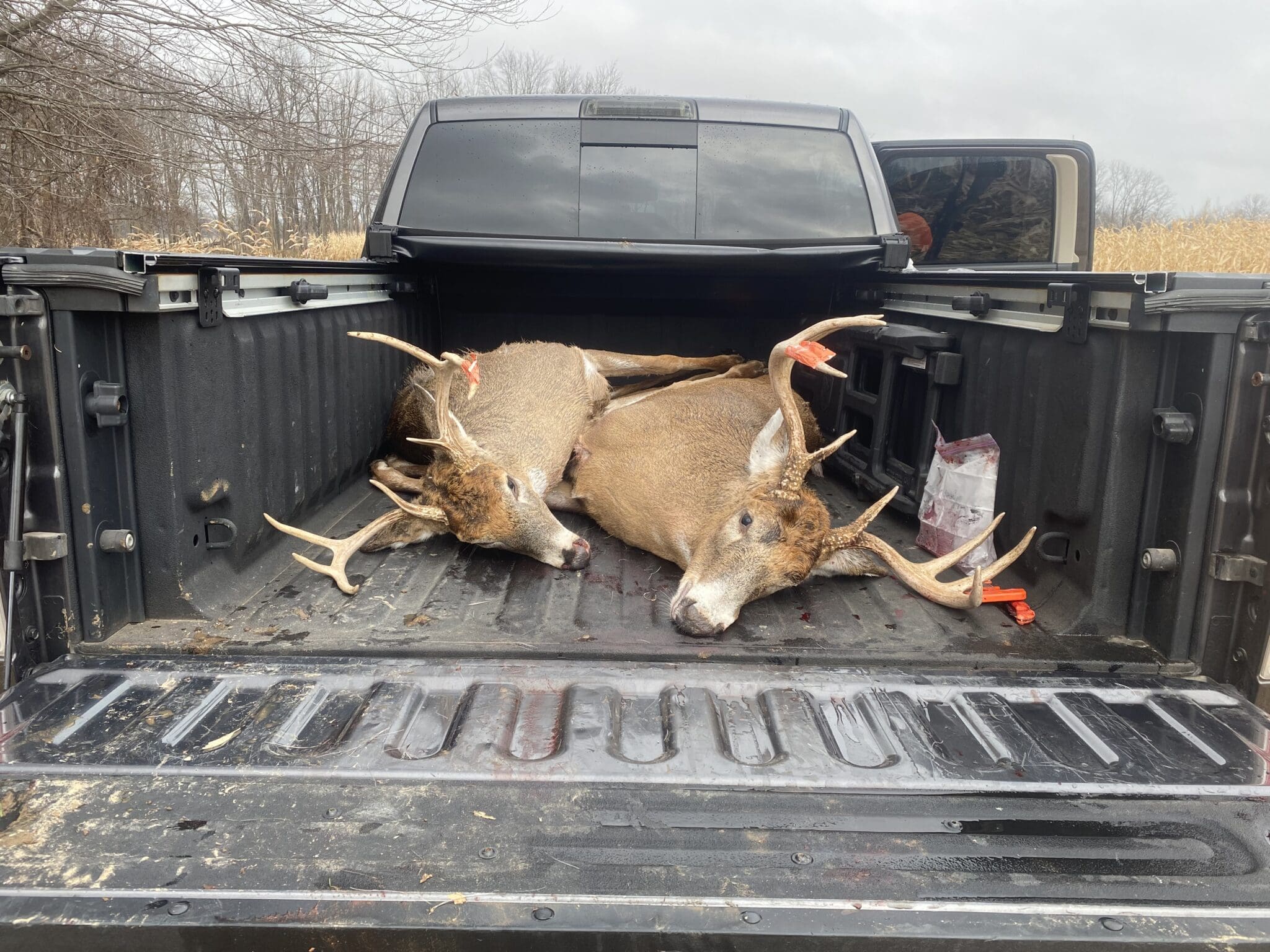 Sitting during the morning hunt when the first (smaller) buck came out of the swamp at 60yds broadside. Made the shot and watched him run back into the thicket. Called my brother and was waiting for him to make it over. Decided to go find first blood and wait there when I heard a crash though the woods behind me. 80 yards and the bigger buck came out broadside at 80 yards. Took the shot and watched him go down. First time tagged out on opening day and it took 15 minutes.