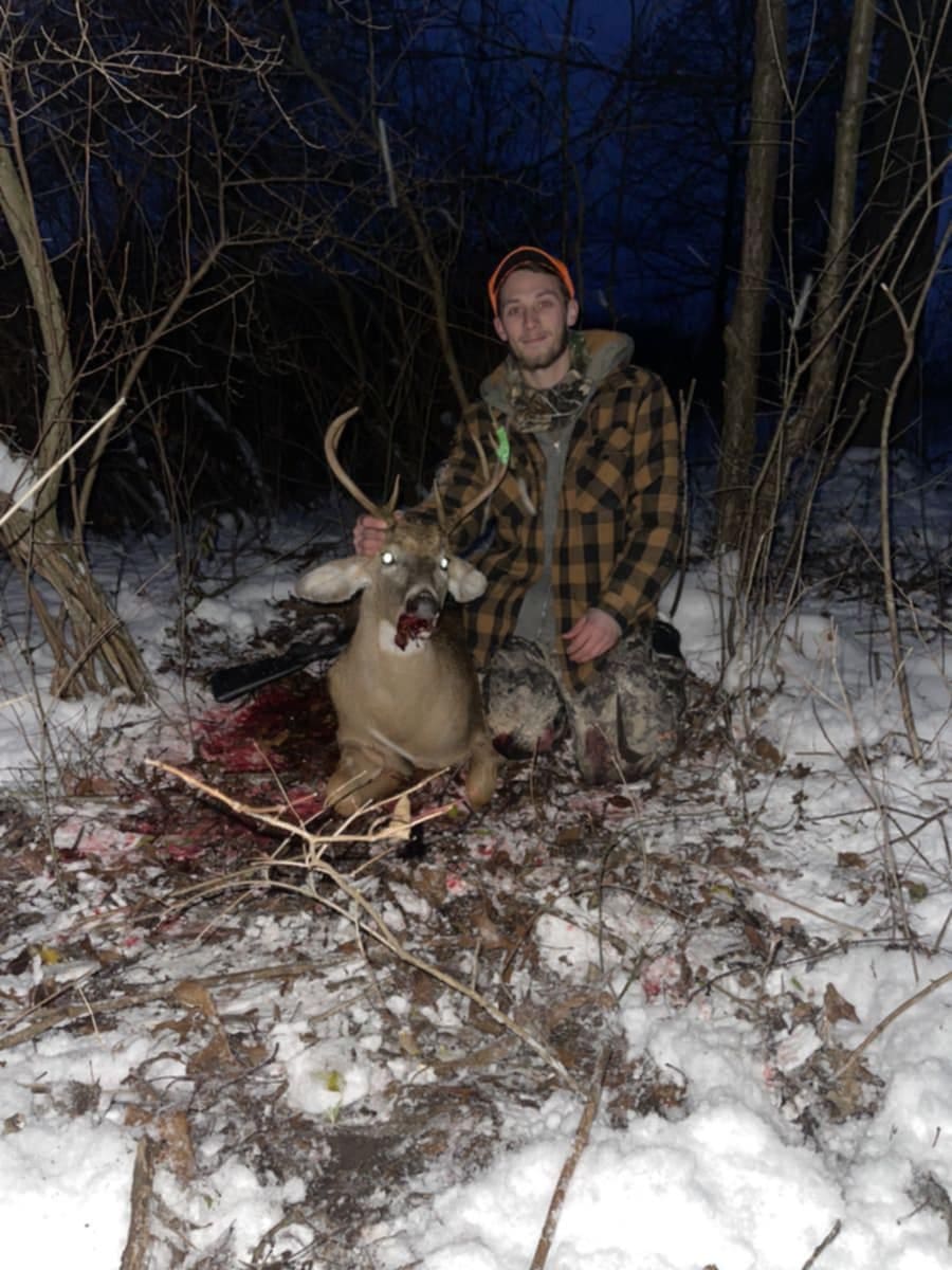 Me and my brother went pushing on a piece of Public land my brother pushed this beautiful eight point right to me shot him at 40 yards. He only went 45 yards and fell over. A hunt I’ll never forget.