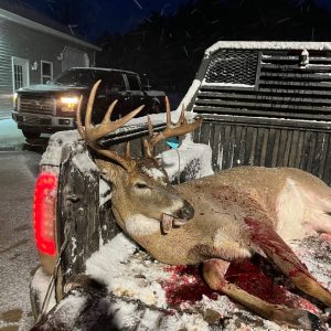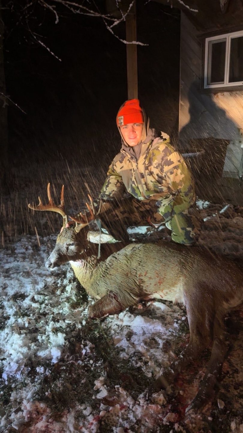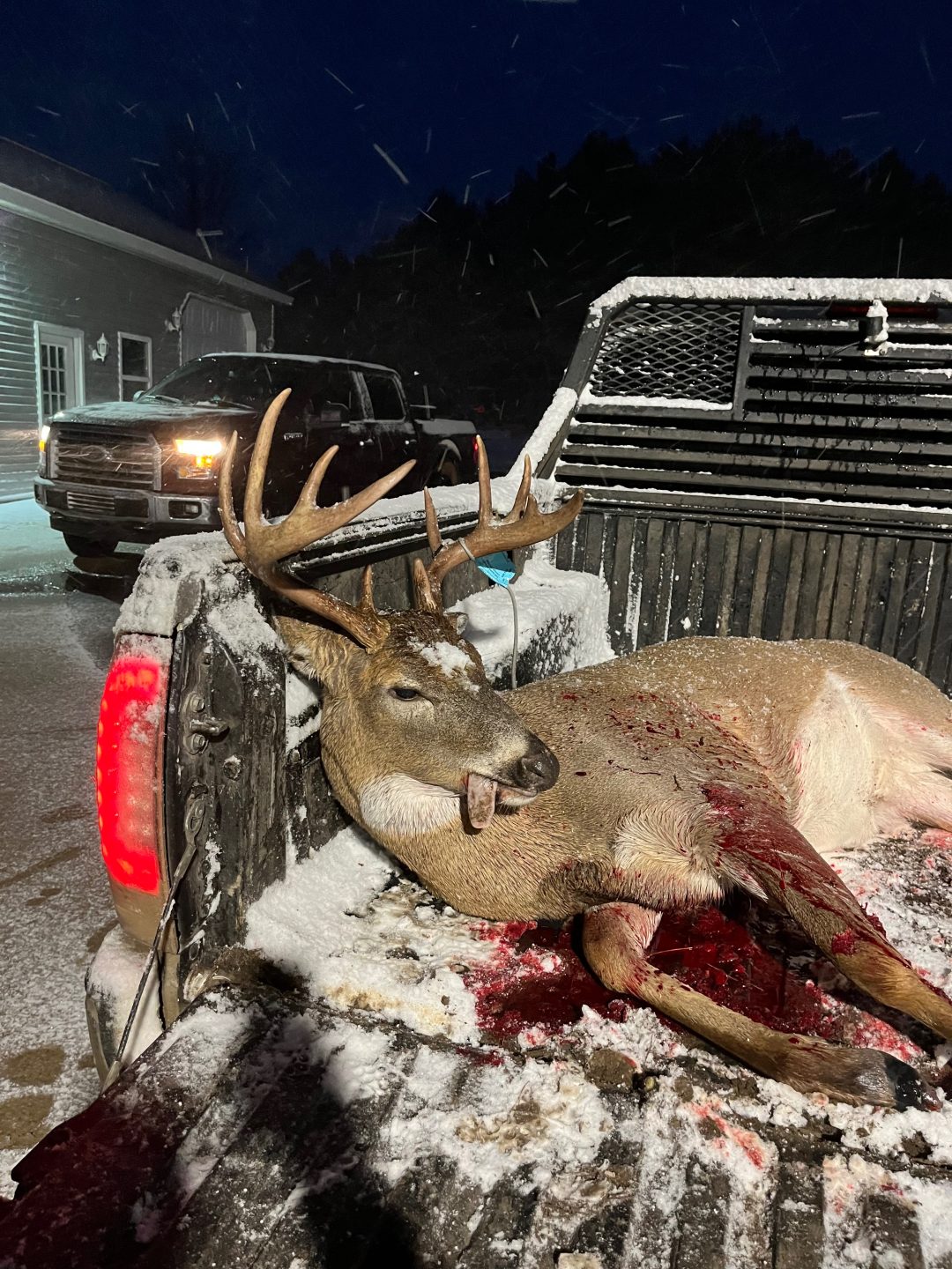 He came out chasing a doe, I shot him around 100 yds he ran about 20 yards and piled up