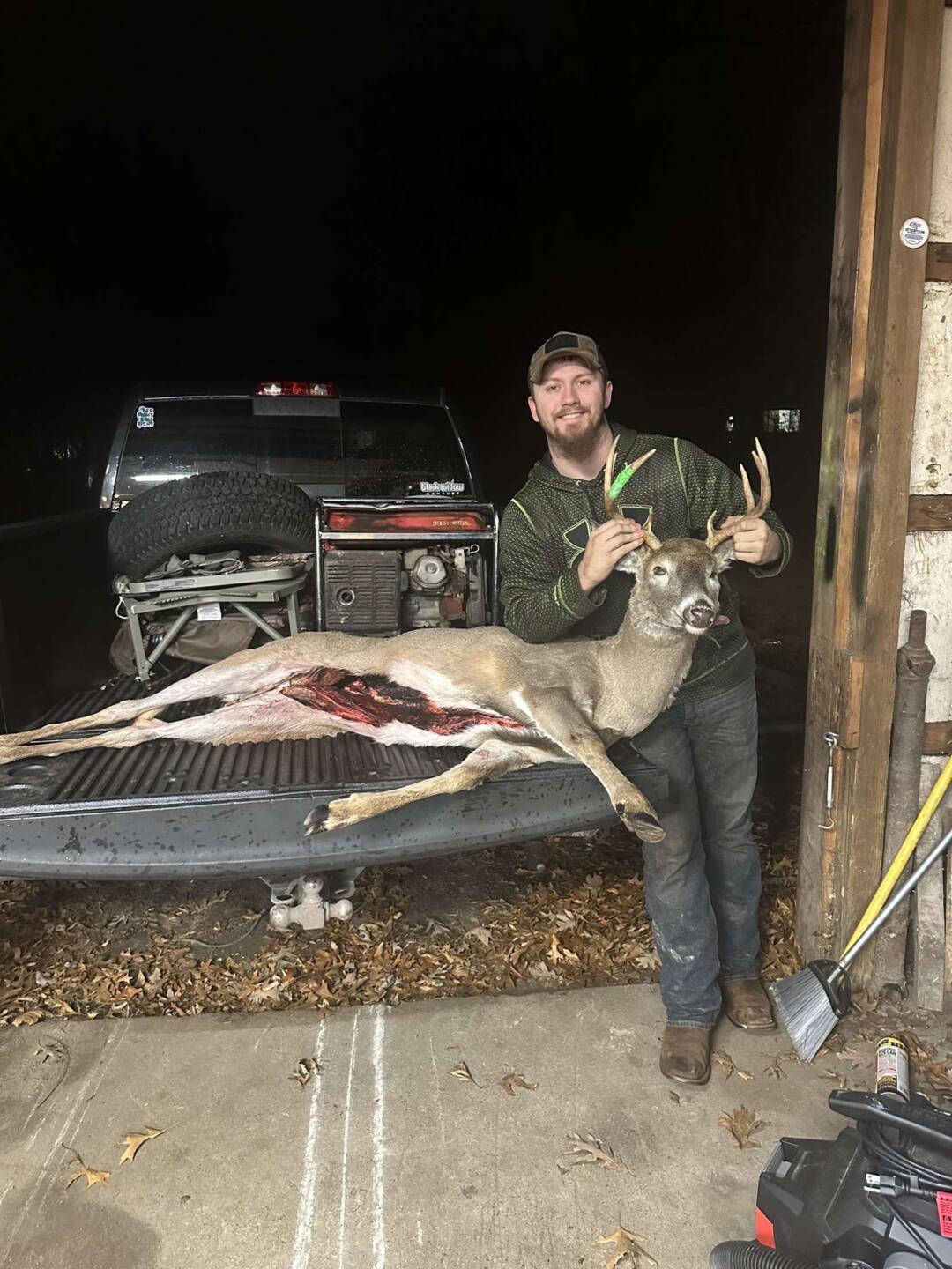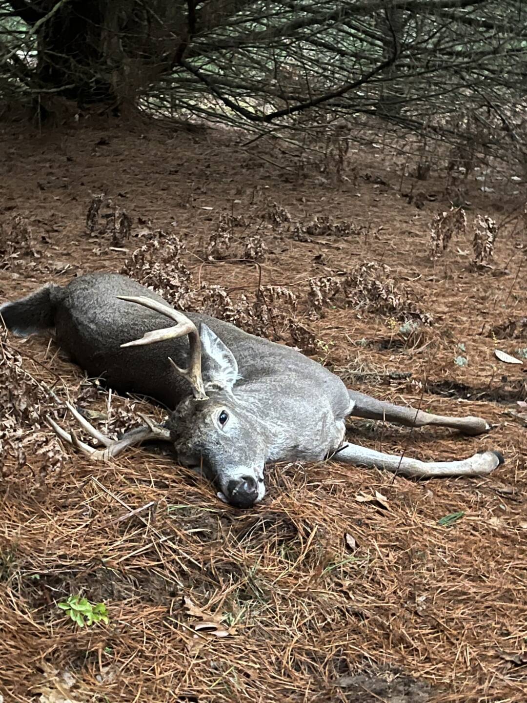 This story starts in October with me getting a whole new setup on my property, he was the first buck I had on camera and I knew he’d be my target this year, finally made time to make it up there, and I got out late to my stand from lunch and a town run, sat for about an hour and was dozing off when I noticed something moving, reached to grab my gun when I thought it was over, but little did I know that he walked 20 steps more toward me, and gave me the opportunity of a lifetime. Ran 60 yards and piled up. This is my biggest buck to date