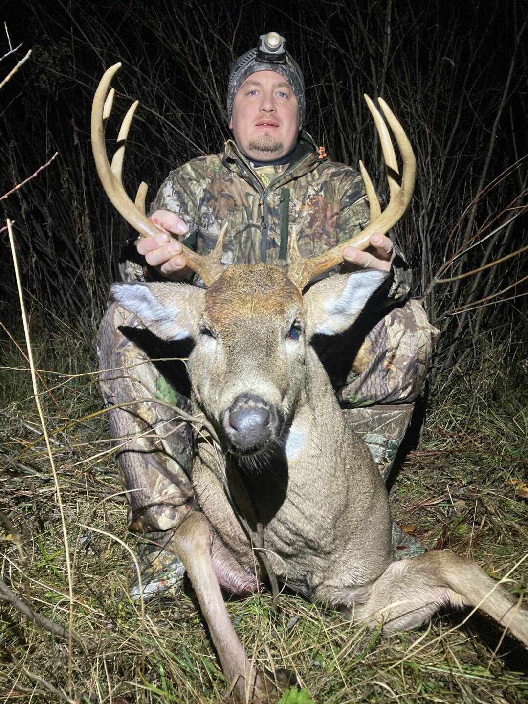 It was my first sit in this stand. My father and I set it up in September as a last ditch setup for the season. Started to play my buck grunt 45 minutes before dark. Called this buck in. He was under my tree stand for 10 minutes. Barely making a sound. Thought he had snuck off on me. He then made some noise and walked away through the brush. Popped out at 80 yards away and made a scrape. Then Continued on towards the open field. He then walked right next to my truck I had parked in the field behind some pine trees. About 200 yards away from my stand.