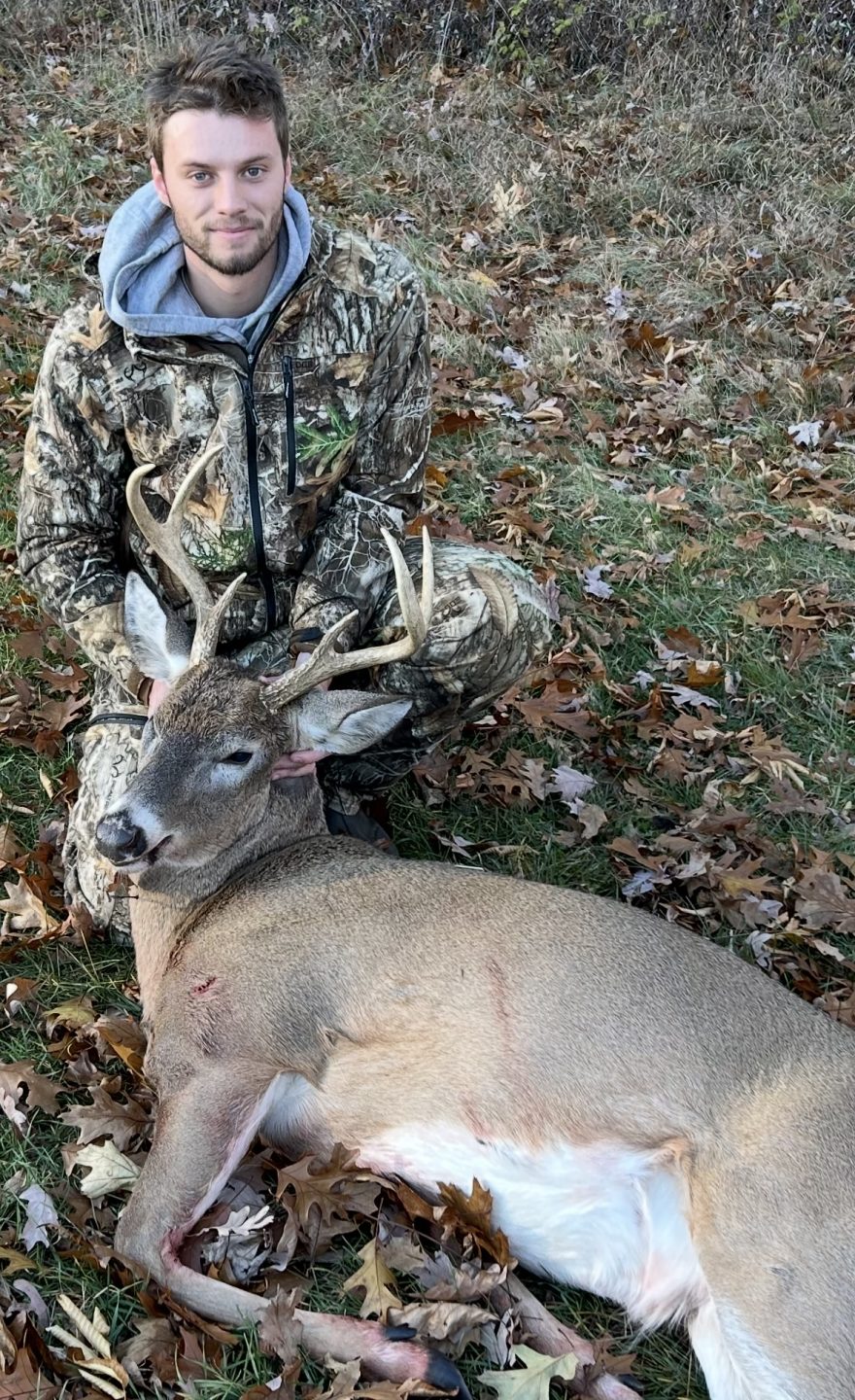 Sitting in the treestand at 7:55 AM, when I noticed a small buck about 20 yards to my left. I noticed he was staring at something across the field. I followed his view and observed larger buck. The small buck then runs off. I watch the larger buck, who also turns and runs off. Puzzled, i then see an even larger buck standing at the end of the field. This buck runs to the middle of the field, where I take my shot. He ran about 70 yards and piled up. Largest buck to date, and a 6 point at that!