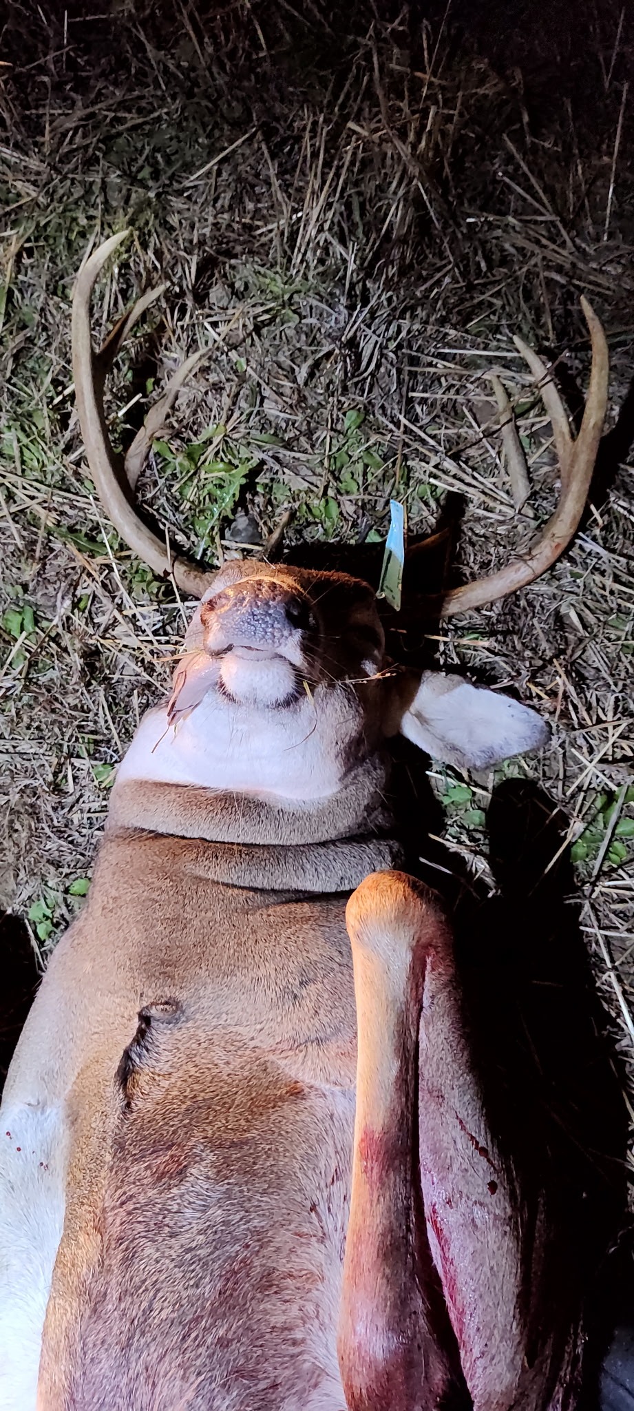 Been out every evening since opening day of bow. Was around 730 he came walking across following some does shot him left side above shoulder double lunged him at 40yards and he ran about 20yrds. He’s a big body ole boy just a beaut. 8pts