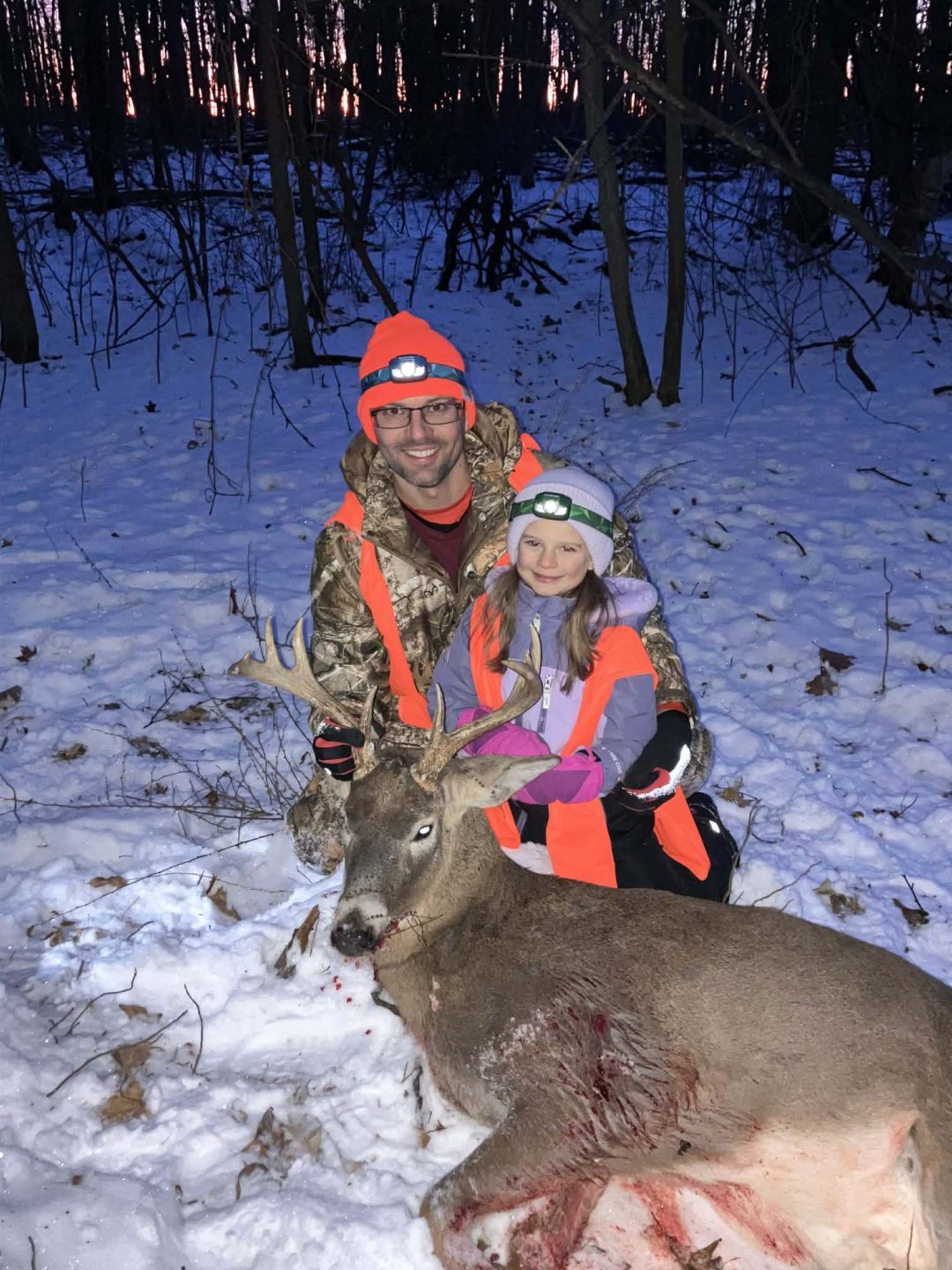 First time taking my youngest daughter out hunting. She was getting tired after a long day at school and I told her that we didn’t have much time left. Shortly after that a big buck shows up out of sight for me and she springs her little arm up and says “Dad a buck!” And I quietly put her arm back down and looked around the window and there he was. I raised the gun and she covered her ears. She did an awesome job tracking and stayed for the whole process of harvesting a beautiful deer. I couldn’t be a happier dad!
