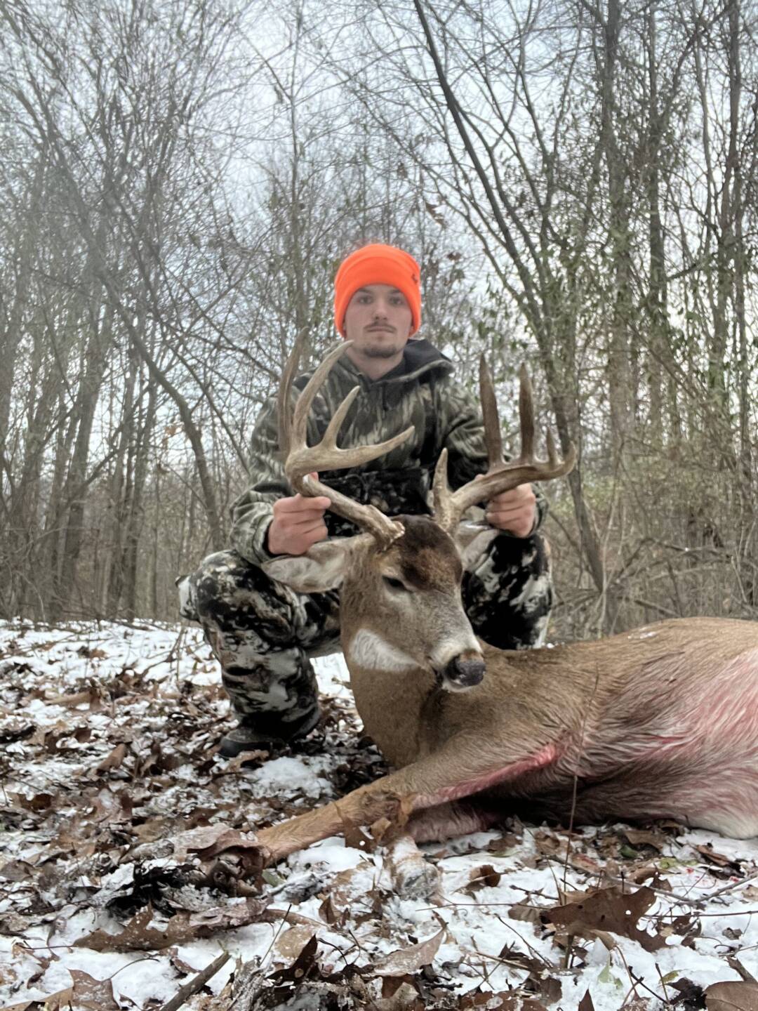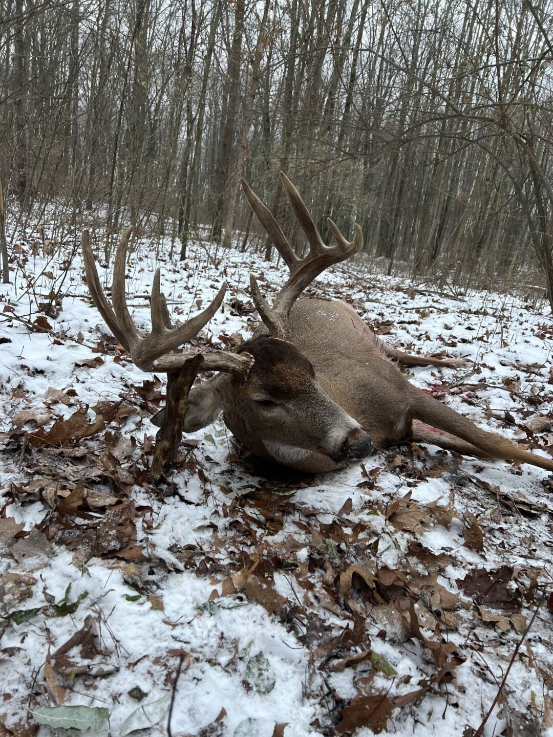 Four days after harvesting an Ohio buck! This guy shows up on my trailcam. Funny part is that I was supposed to go and sit in my treestand but I never got out of bed. That morning was the first time he ever showed up. Not only did he pop up out of nowhere but he was on video on my trail cam 30 yards from my treestand in shooting hours. Today December 2nd, he showed up and gave me a broadside shot at 45 yards and I made a great shot on him burying my broadhead in his opposite side shoulder. The Rest is History!