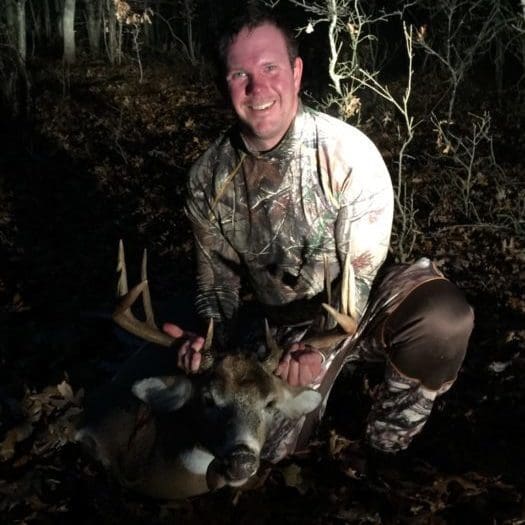 I got out to my stand at 1pm and saw a couple of does. After they walked off I used my illusion black rack and grunt call and did blind calling every 20 minutes. He ran by me once chasing a doe at about 430 and I couldn’t get my rifle fast enough and he was growling at her. So I quickly grabbed my rack and my grunt call and I started rattling hard for 30 seconds roughly and grunted. Not a minute later I heard the doe coming with him doing tending grunts right behind her. I grabbed my rifle and scoped him out to check his rack because I’m a big fan of letting them go if there not mature. He was making deep guttural grunts so I knew he was mature and I got a glimpse of one side of his rack. I followed him in scope and I had my cross hairs just in front of his shoulder, I was aiming for a heart shot. I followed him and when I saw an opening in my scope I pulled the trigger. I caught him in the neck and the exit hole was roughly on the other side close to the heart. When I pulled the trigger he face planted into the dirt. I was so excited and I still didn’t have the shakes or anything because it all happened so fast. I didn’t even have time to get nervous. I still didn’t know the size of the rack. So I got down and walked over to him and when I turned his rack over I was in complete shock. Biggest buck to date with my rifle and bow combined. I haven’t shot a buck in 4 years because so have passed up the little ones. So after shooting him I sprinted a half mile to get my grandpa and it was really exciting to have my grandpa up there with me when I got my buck. He taught me how to hunt and it was a special moment that I’ll always have.