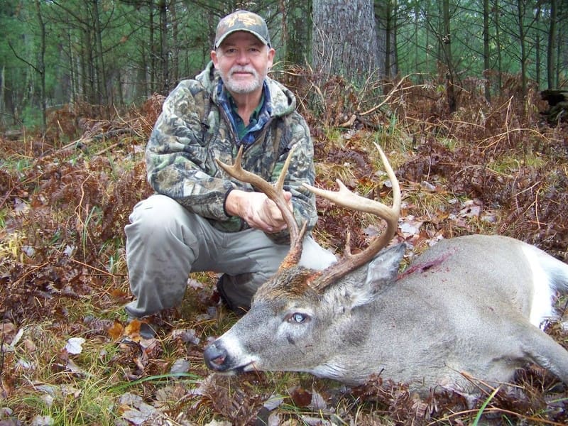 2 doe came by and this buck followed shortly after, 15yd shot sparse blood trail. Tracked for 200 yds that night then the rain moved in. We decided to continue in the morning found it 40yds after last blood.