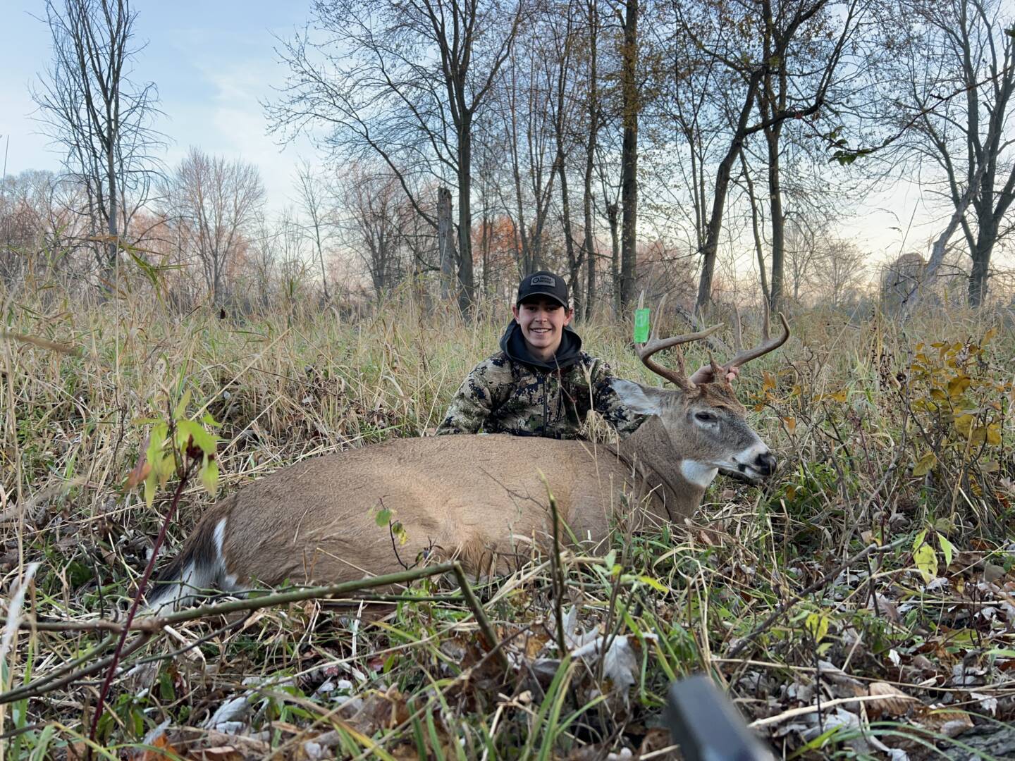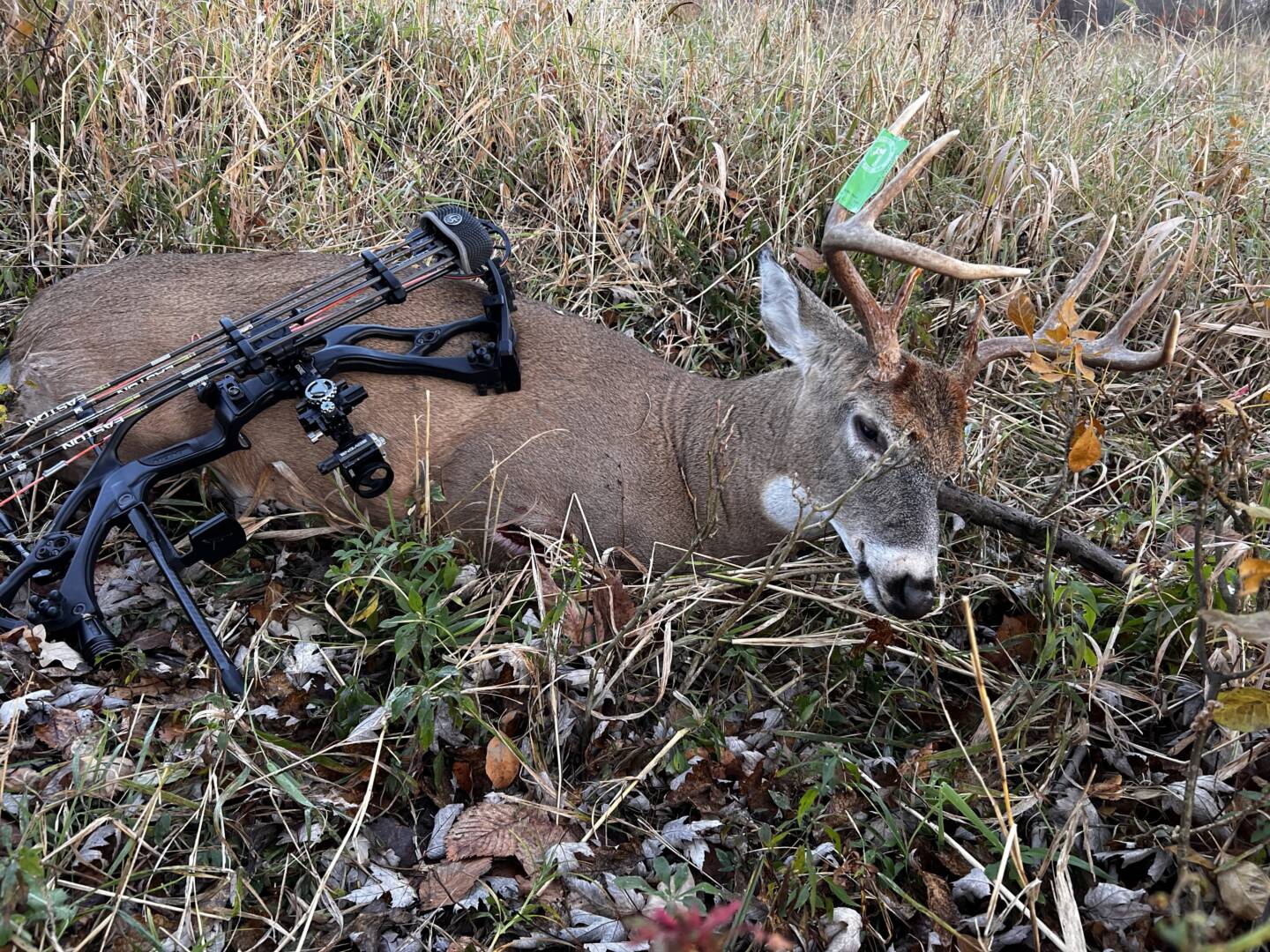 Last night I made a questionable shot on this buck not knowing for sure of where exactly I hit I thought it was back a bit so I backed out for the night and let him lay and figured I’d mark where I last seen him and go out in the morning and look for him and sure enough he only made it 5 yards from where I last seen him! Turns out I made a good shot and just a little lower than I would’ve liked but glad I backed out!