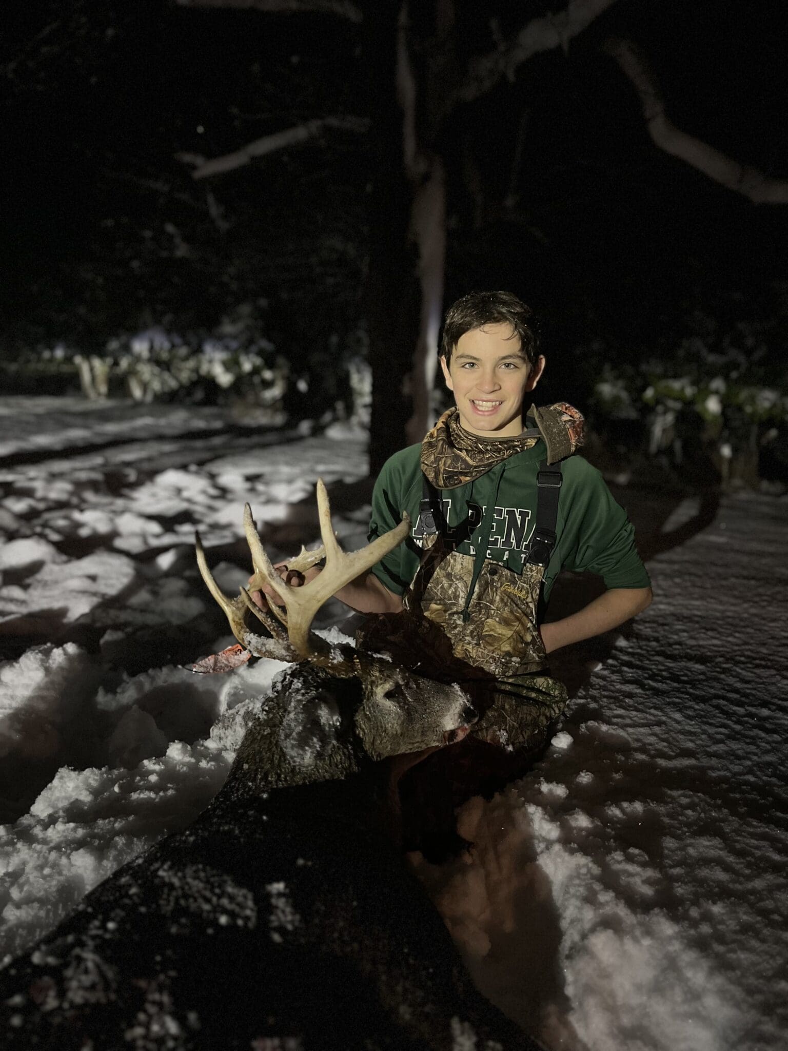 This buck came out running, stopped, and gave a broadside shot at 60 yards.