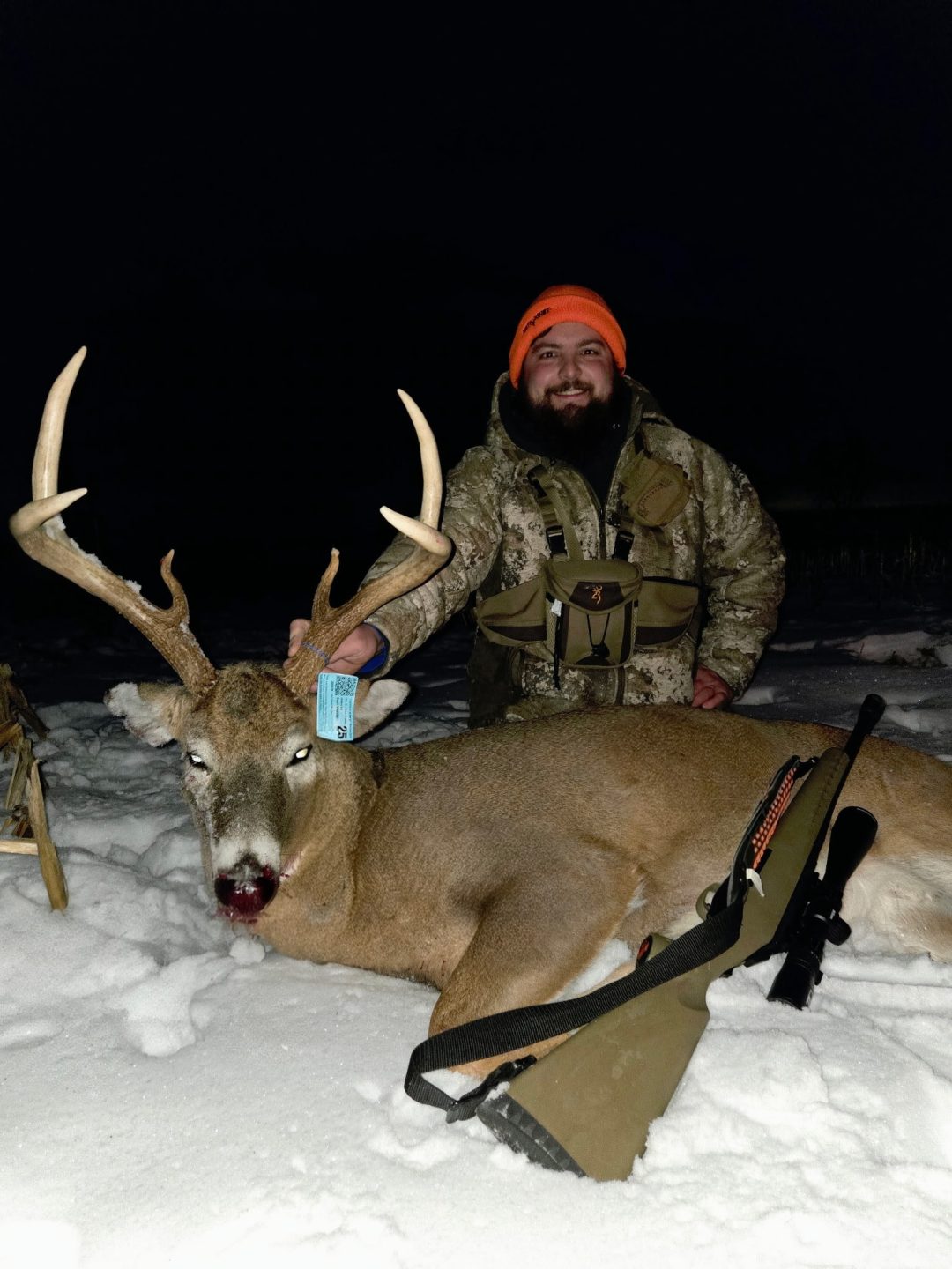 I Had 2 other chances at him the last 3 weeks but wasn’t able to get a good clean shot. I was hunting him hard but never laid eyes on him this past week, so I didn’t have much hope for tonight, well he ended up stepping out around 5:26pm, I waited for him to turn and I dropped him at 200 yards with the .450.