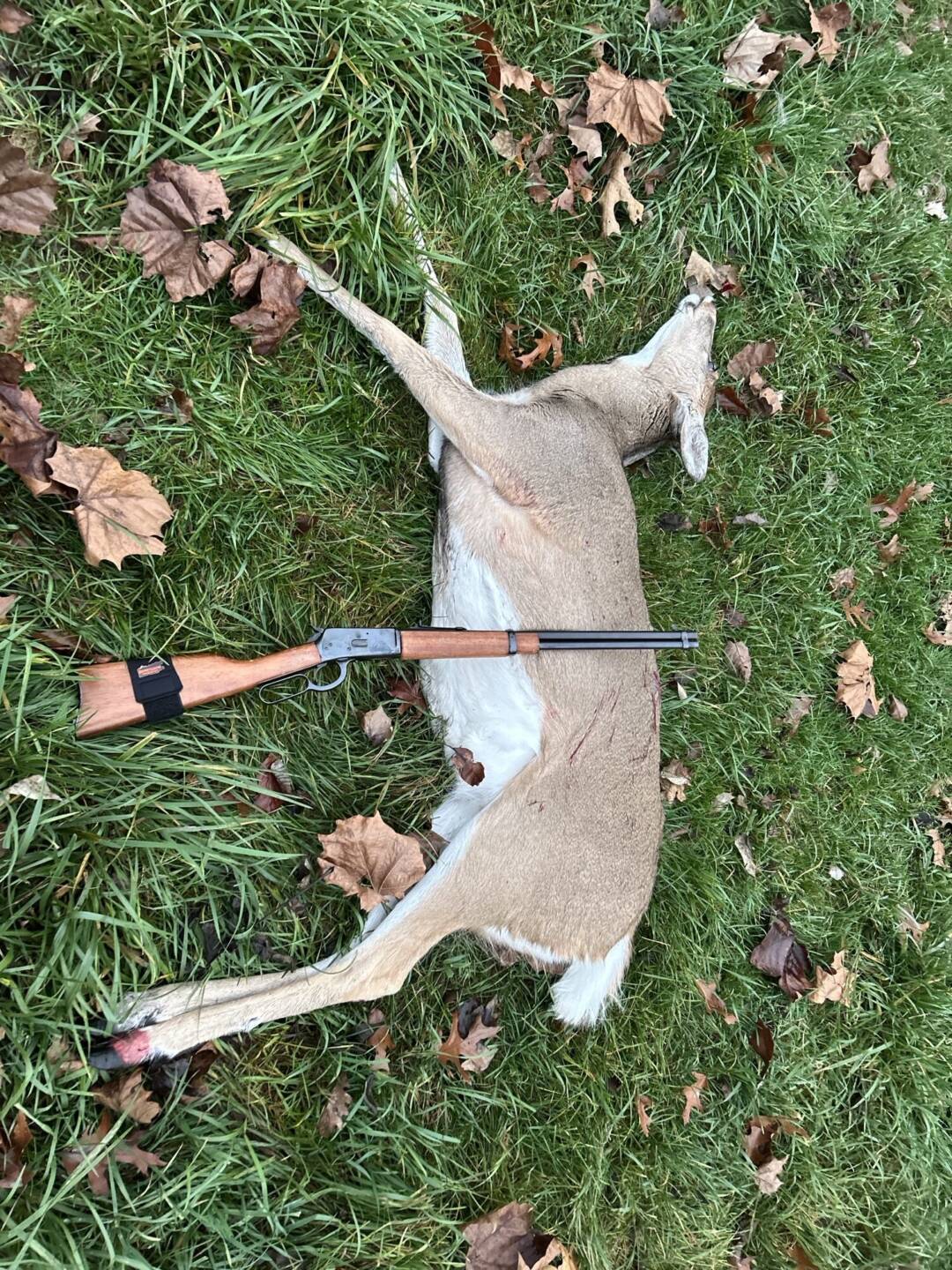 I was about to leave my blind around 5PM, and decided to wait another 15 minutes, this doe came into my line of sight out of nowehere and put it down where it was standing.