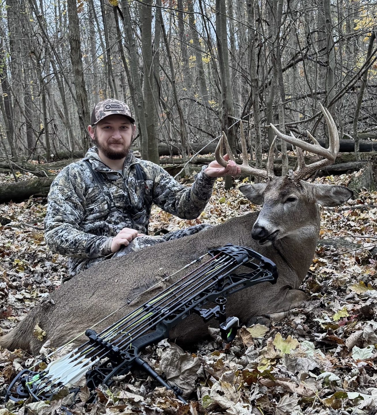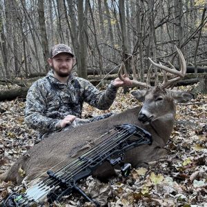 Bumped him up with a doe on my walk in. Luckily, he seemed to just hear me and not see me. His doe took off into the corn and he followed. I hurried over to my tree amd got setup. And about a half hour later she drug him right by me at 20 yards!