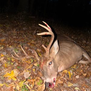 The wind was perfect. He came in alone. I took the shot at about 20 yards. He ran 30 and dropped. My biggest buck to date!!