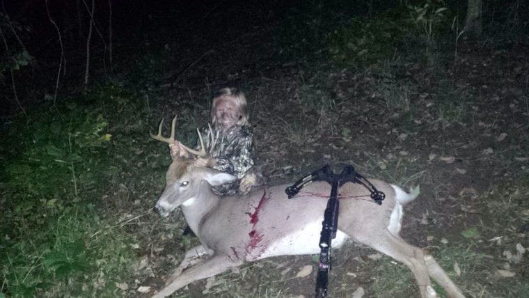 8 years old first buck, last year she killed a doe with a crossbow as well. Perfect shot right through the heart.