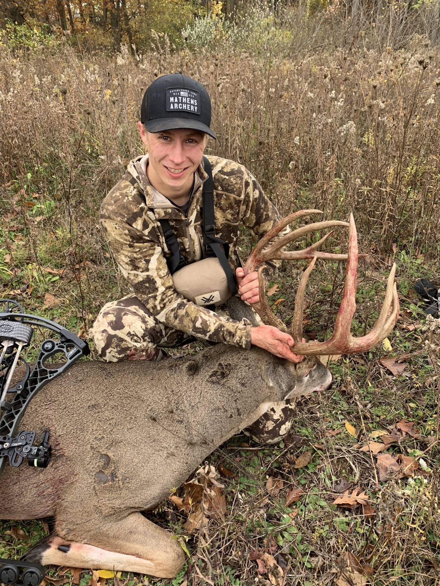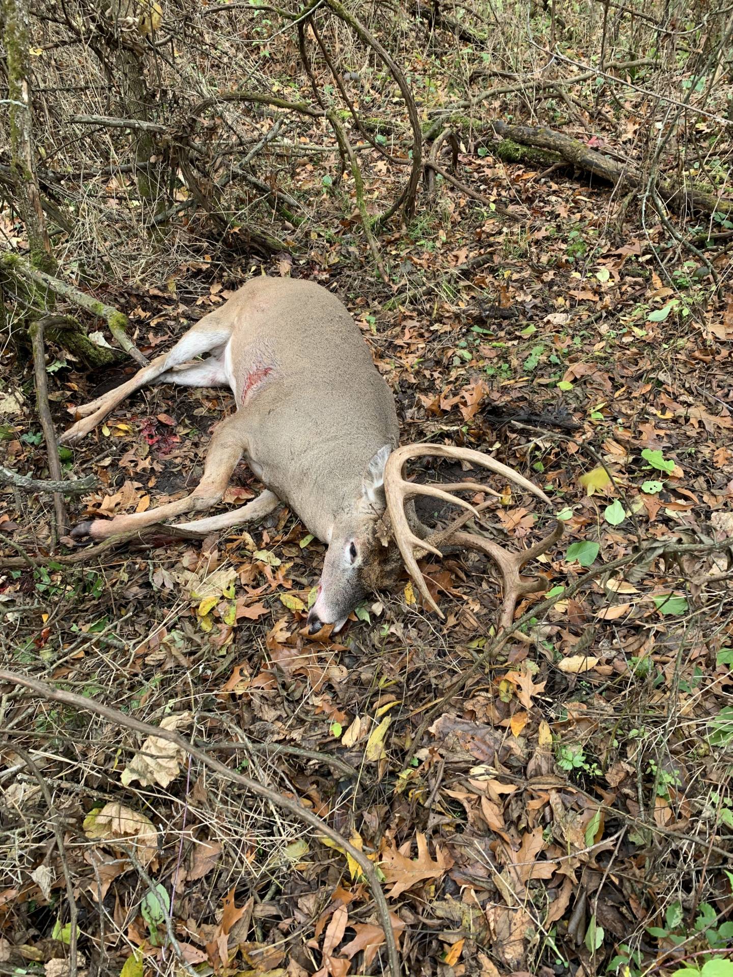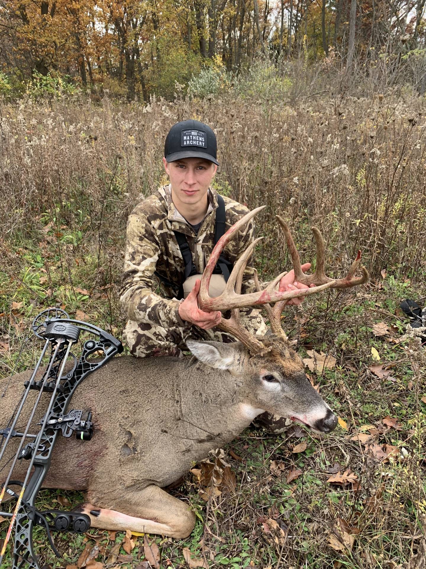 Saw four bucks that morning. Really nice 8 point at 37 yards couldn’t get a shot. Doe and small 8 walked by couldn’t get him to stop. Bleated 3 times after he walked off. Shortly after fork was following them. Came to 30 yards in front of my tree and stopped. This big buck walked over small rise in over grown field and closed from 80 yards to 30 squared up to the form. Drew back and he whipped his head around to scratch his ear. Turned broadside again and shot him at 30 yards. He ran about 40 yards and stopped. I ranged again he was at 60 yards. I shot again and missed. He ran about 110 yards and died. Biggest buck to date and on public land. Get out there and enjoy our great state!