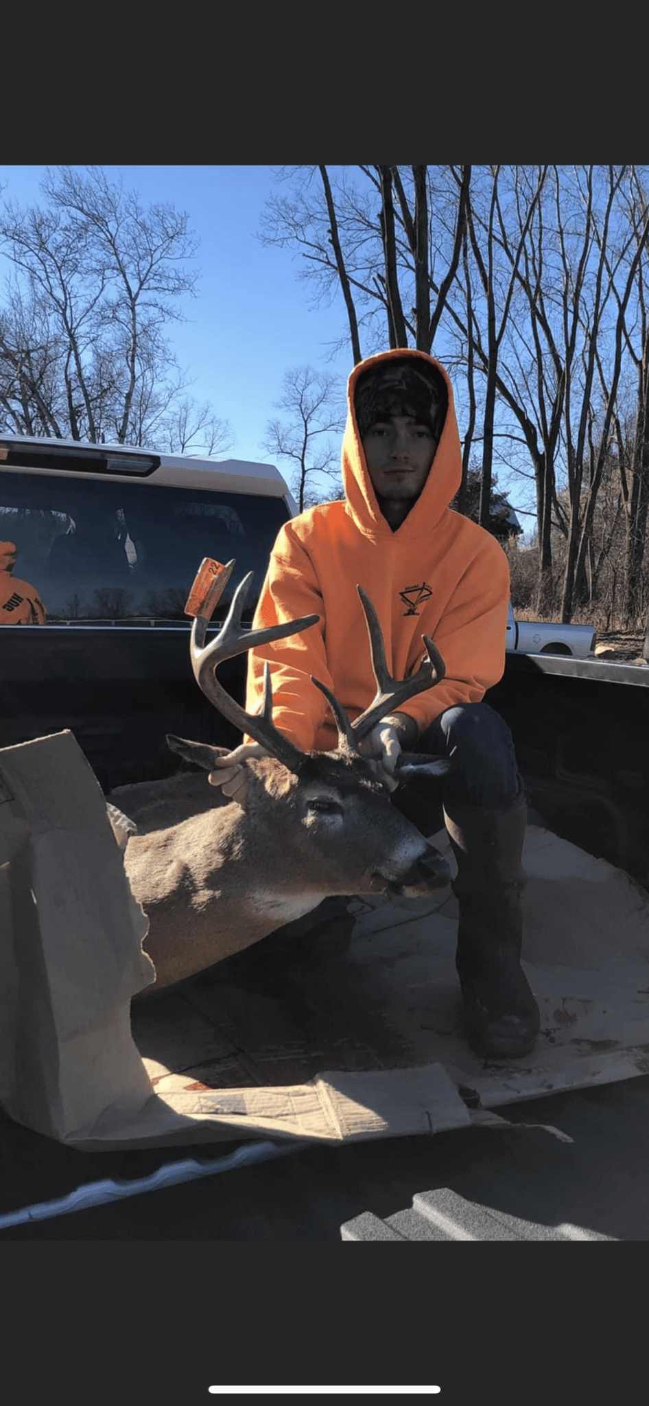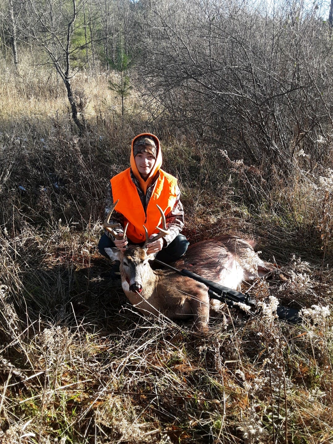 Watched 2 does all morning then a decent buck stepped out was gonna shoot him till I seen his whole left side was busted off not 5 minutes later this guy stepped out walking the same path as the first buck and I knew I wasn’t gonna let this one go I took the shot he kicked hard and ran about 150 yards and crashed