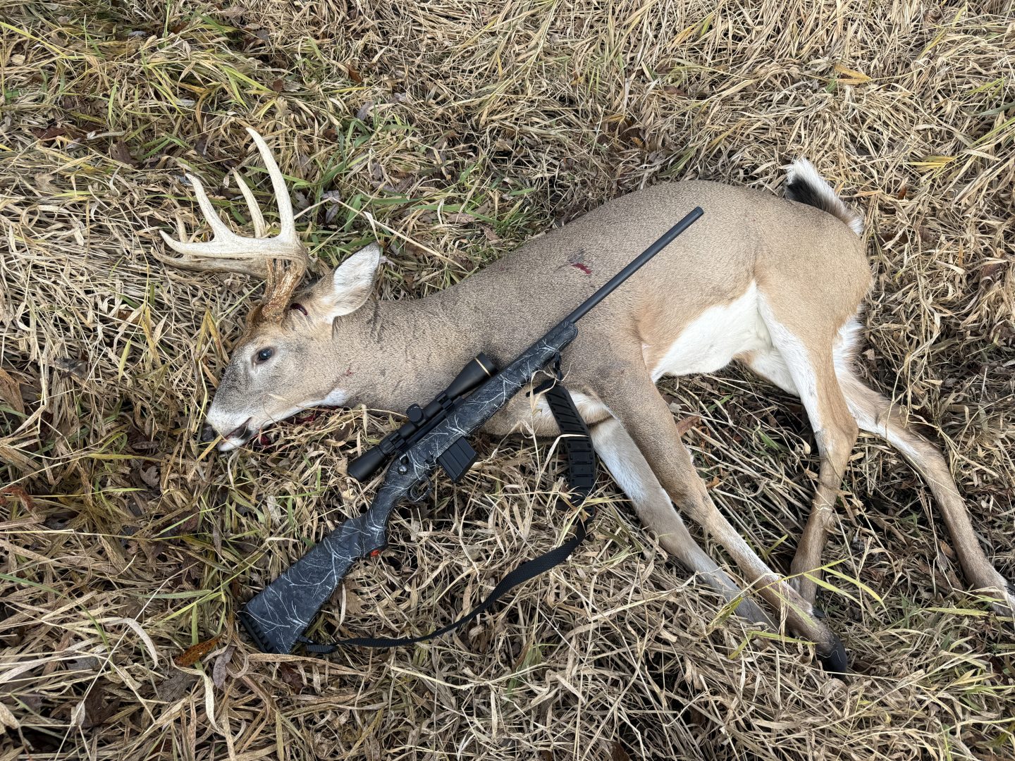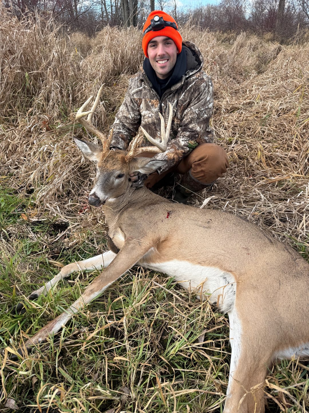 Opening morning in Eaton County went pretty slow for me with the warm temps and high winds. However, there was a 30 degree temp drop overnight and I knew I had to try again. Sure enough, a doe entered into the shooting area around 8AM and this big fella was chasing her. He was about 65 yards away and gave me a perfect broadside shot for a double lunch placement. Got down about an hour after the shot to track and he was only about 20 yards from where I shot him. Absolutely gorgeous hunt for opening weekend in Michigan!