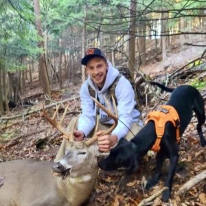 Huge shoutout to Calvin and Scout with scent hunter tracking. After inspection of the arrow and hit site I didn’t exactly love what I saw. I called Calvin and based on pictures and an explanation he recommended waiting until the next morning. We went out at 9 the next morning and he was dead 150 or so yards from the shot. My best archery buck and 2nd biggest so far!