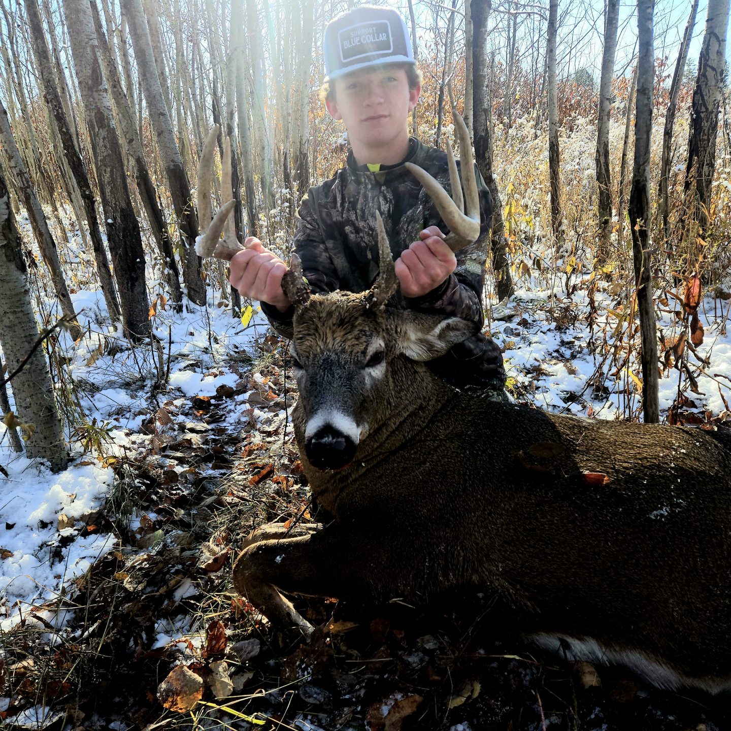 I shot this buck in the morning. First buck with my compound bow!!