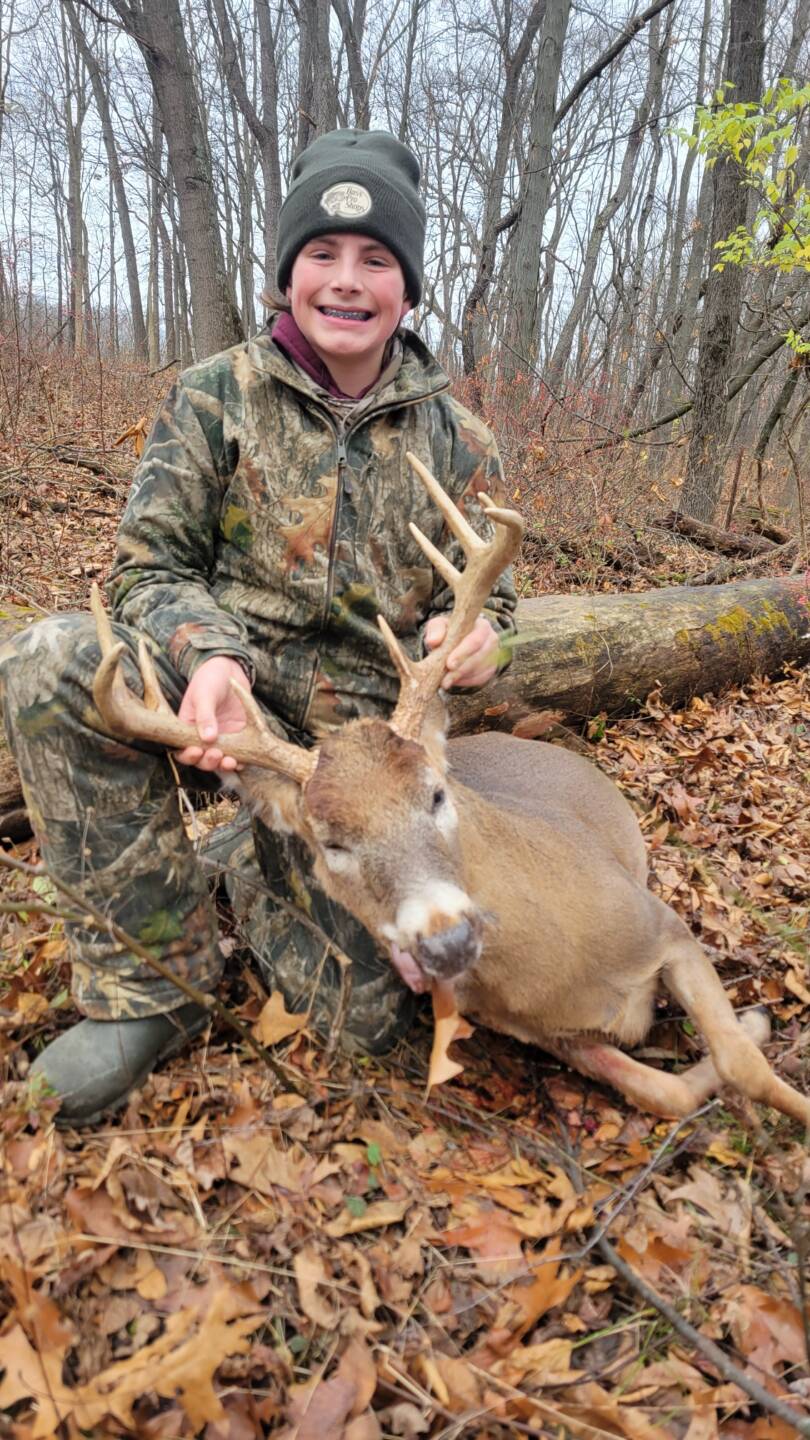He was staying pretty close to 3 does for about 30 min then left. About an hour later he came and followed one of the does out to the field, I stopped him about 70 yards out and he only made it about 50 yards before he dropped. It was a good Thanksgiving!