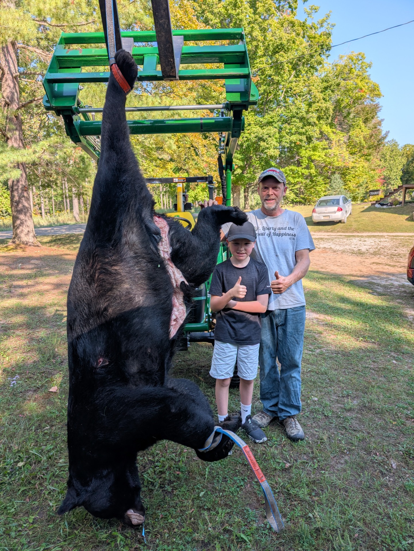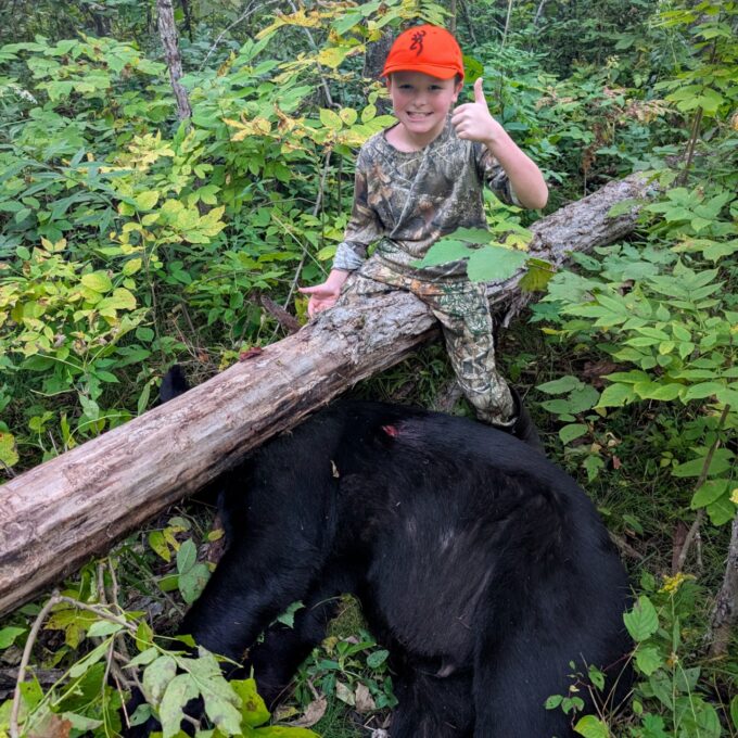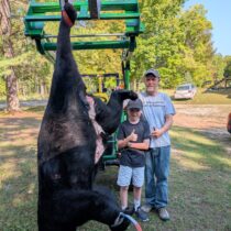 We got settled in the blind at 4pm, hunting with the worst wind possible, BUT made it happen. While spraying dead down wind scent a way spray on both of about every 10 minutes the giant bear made his appearance at 7:27pm. One shot from the Model 70 Winchester .270 Weatherby Mag and he only made it 25 yards. This is Connor’s second bear. Last year he shot a 160 pound dressed boar, by receiving my parents gifted bear tags, this year and last. Just a unbelievable hunt that will last forever!!! The skull was green scored at 20 2/16″