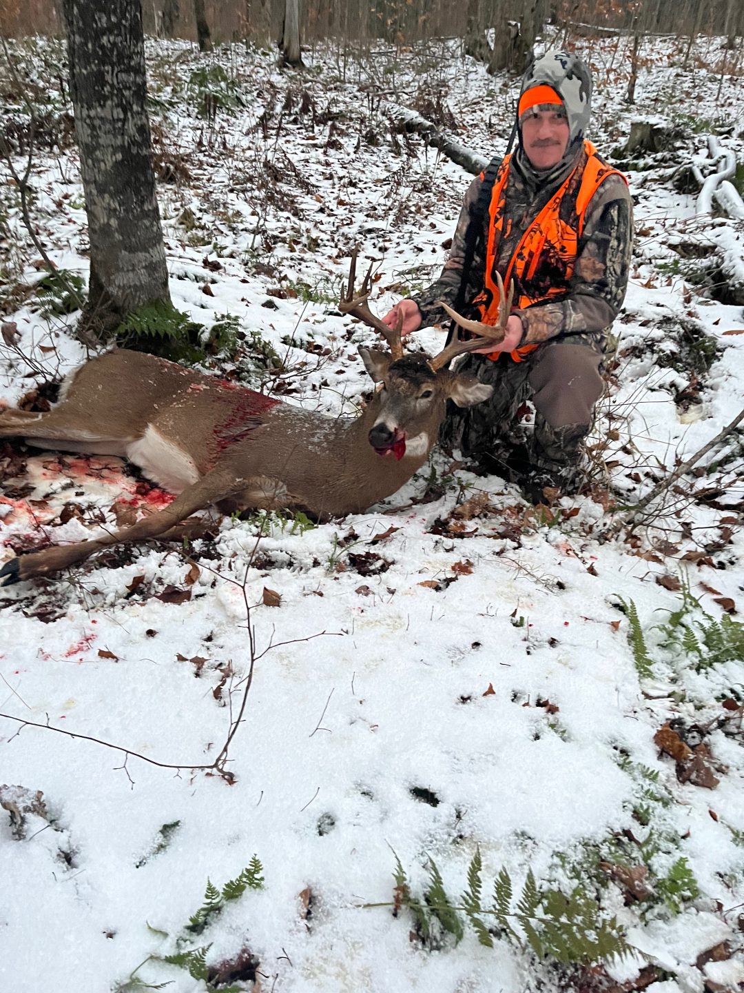 We had this buck on camera the last two years possibly 3. Hunted my son’s spot because he ended up going downstate to hunt at his father in laws property with his wife! Had to shoot at the deer while he was skirting a ridge and he ran another 20 yards and shot him again!