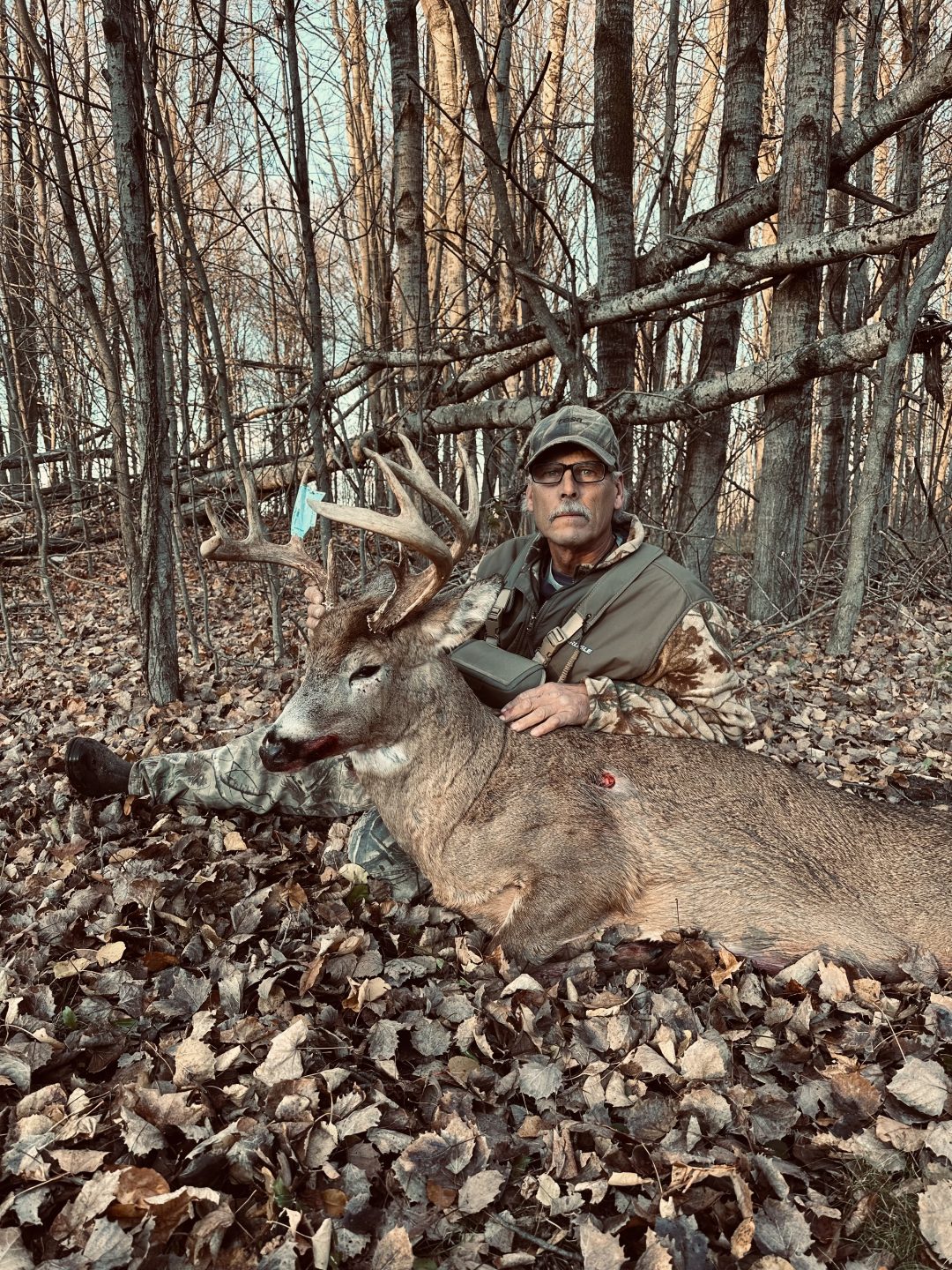 Got a picture of him on the 8th waited for the right wind to slip into the stand. The 12th rolled around and it was go time. As first light approached I could hear a buck tending a doe down in a bedding area. Daylight broke and around 7:30 I noticed a big bodied deer moving through the cedars skirting me at about 80 yards I slowly stood up bow in hand I made a few grunts as a last ditch effort to pull him in. A few minutes passed and chaos broke out in the bedding area out came a small 8 point with this buck right on its tail the small buck ran below me and continued on as this buck stopped just outside the bedding area observing every inch of the landscape. I felt it was the perfect opportunity to snort/wheeze I did just that and here he came on a string. Stopped him at 20 yards and the rest was history. Tagged out before rifle season has never felt so good! Thankful for every moment spent chasing these animals in god’s creation.