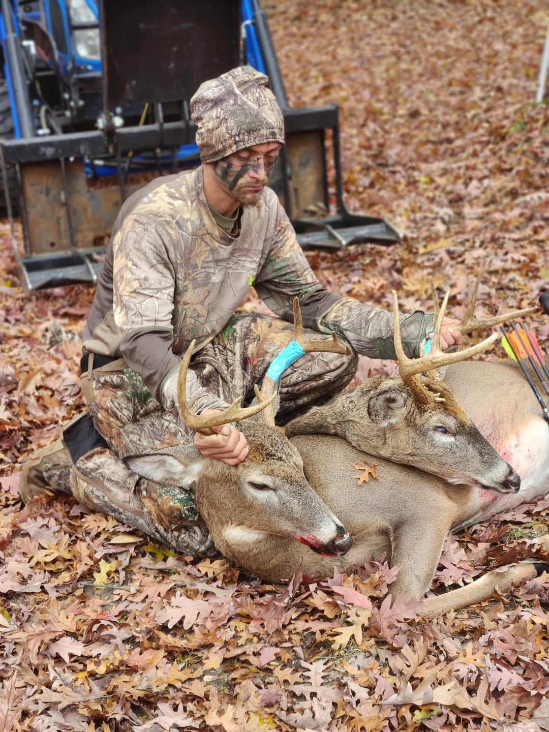 Went and hunted some public in the am with a buddy deer were moving like crazy. My buddy had to go home late morning. So once I got home I sat down and relaxed looked at my doggo and asked her if Dad should go sit out back and tag out and she got all super excited as she likes to track deer. So I saddled up snuck out back to my stand on our property with the perfect wind climbed in my my stand and sat for a bout 20 minutes. I heard a doe bleat so I decided to give it 10 then I was gonna bleat to see if a buck was in the area I hit my bleat 6 times off to the direction o wanted the deer to end up and low and behold I heard a crash and then footsteps so I stood up in my stand got ready and he came in to my left I didn’t have the best shooting to my left but he came right to my ladder 3 yards and I found a hole to sneak my bolt threw and took both of his lungs he ran 20 yards behind me and I watched him crash the rest is history tagged out!!