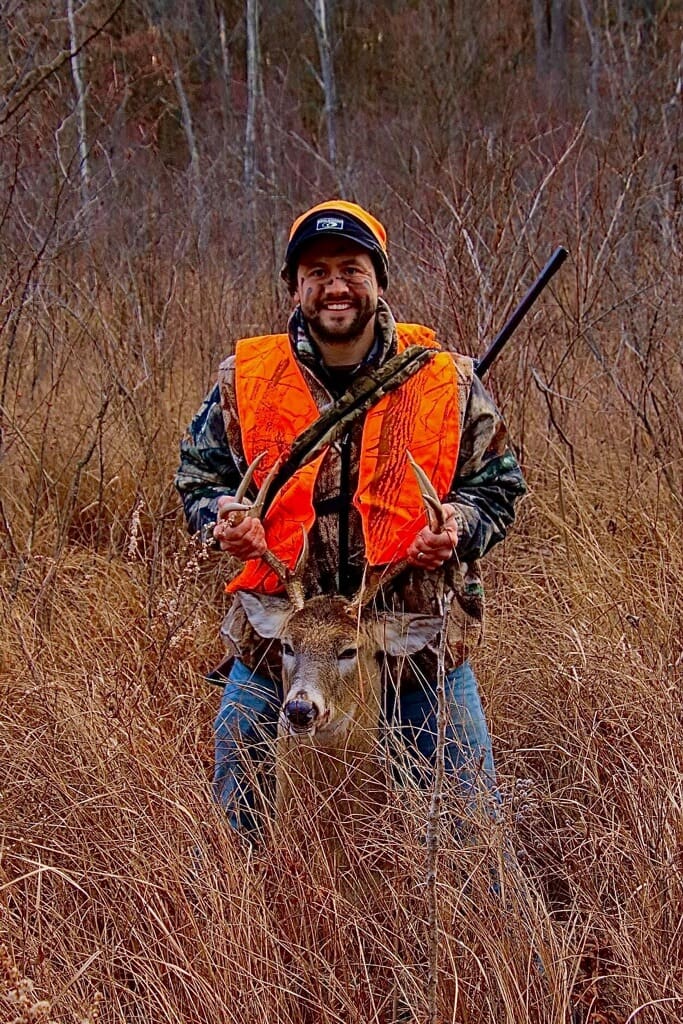 After trying to do everything right and having nothing but bad luck all bow season and now gun season, I was able to harvest my first buck after 18 years of hunting. I decided to hunt the other side of my property, where I had seen an old stand hanging at the end of last season, I purchased the property 2 years ago. I headed out with a handful of screw in steps and a couple ratchet straps. I got everything set up as I made my way into the stand, I was getting settled in when I heard a couple grunts. Figuring it was my neighbor doing some calling I brushed it off. Then, I saw a doe cross my creek and thought to myself “oh… this might get real.” Thats when he crossed behind her, hot on her tail, chasing her across the creek and through the thick swamp brush. They ran back into the creek and disappeared. A couple minutes later she popped back out not 40 yards to my south, then quickly dove back in. A few short moments later he came out after her and paused for a split second, just long enough for me to squeeze the trigger. I was sure I missed as the creek water splashed up behind him and he hardly flinched. To my amazement, he then took a handful of staggered steps and tipped over! I thought he was a nice 8 point but on approach I saw he had split browtines and a kicker off his right G2. An amazing first buck and a buck of a lifetime.