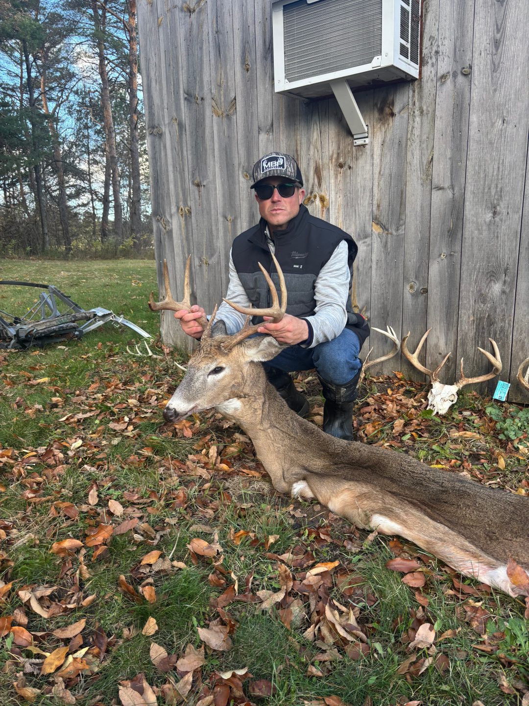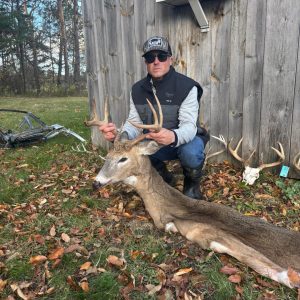 Followed a button buck 150 yards straight to me got to five yards and knew something wasn’t right turned and walked away shot him quartered away at 10 yards he went 100 yards and stood there like nothing happened I had thought I missed until I got down and had a complete pass through