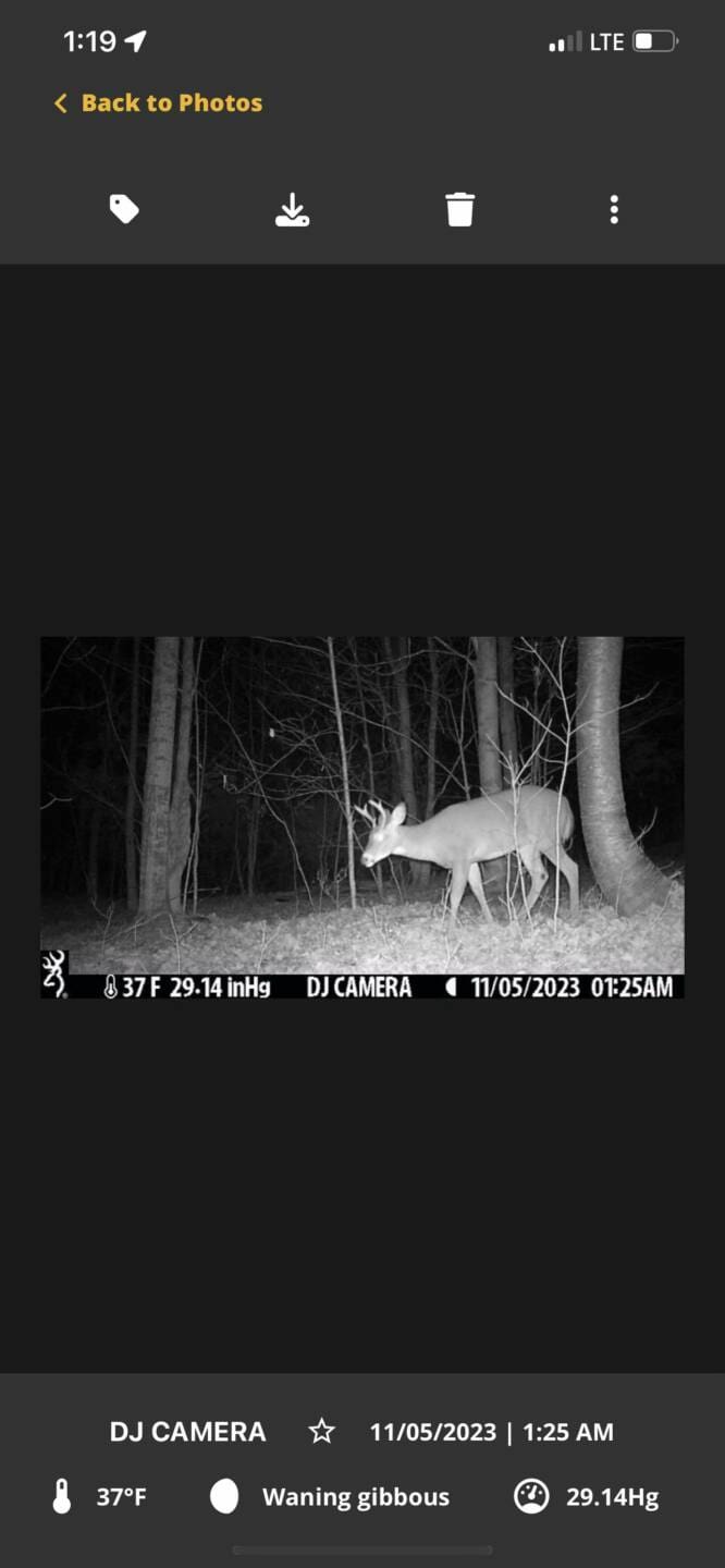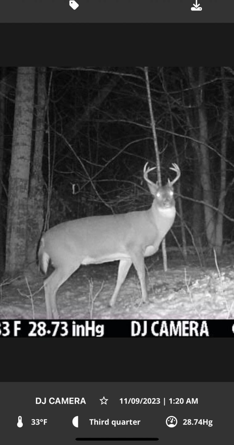 I have a one night of photos, of this buck crossing around, I’ve saw sign of him, but haven’t caught any sign on any of cameras, I started calling him ghost buck. I had sat countless hours, no sign. And yesterday as I was heading out to my blind, he was on my walking trail about 200 yards away from my blind. Just staring at me, I slowley got myself around, as he’s watching me about 70 yards away. I pull up to fire, and pull the trigger, click. Nothing, so I check my safety, I check to make sure there is one in there, and not lose my cool. I try again, click. It did it again, so I restarted from scratch, tried again, finally went off. And he buckled down, and took off. I was in disbelief, I walked up. Couldn’t find any blood, but ended up finding hair. I called up my buddy who lives in the area, we walked the area where we found hair, ended up finding blood. Myself thinking I can read where the trail was gonna continue, went way off track. My buddy ended up finding a good blood trail, and about 200 yards out, found him deep in the woods. Took us longer to get out then it did to find him. lol total story of a life time.