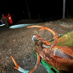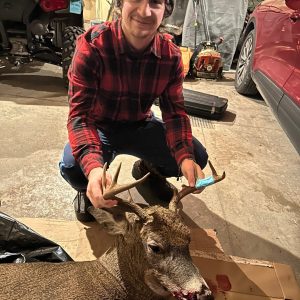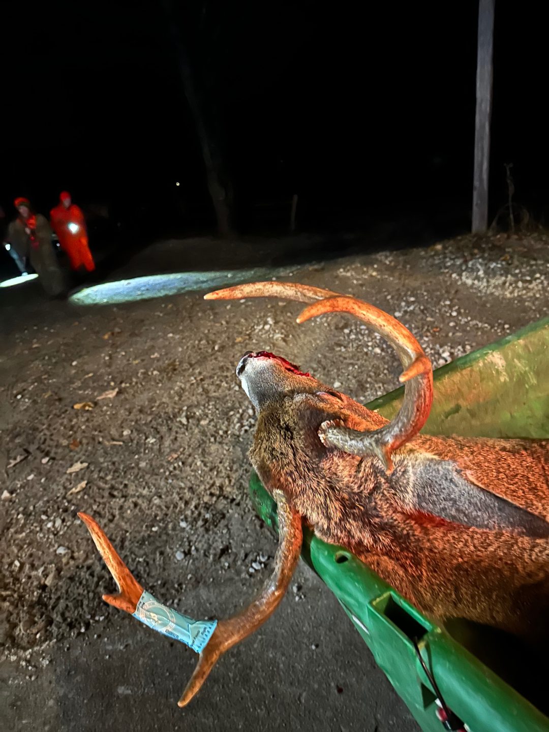 Came from my spot and the neighbor spooked him right when I was about to shoot him. Not to worry though, ran right over to dads spot and he was dead within a minute!
