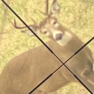 Been really slow up here in Northern Michigan. First couple days only saw 2 does. This guy stepped out into the field at 4:15. Went about 20 and tipped over. Passed on him last year. Never have had a photo of him.
