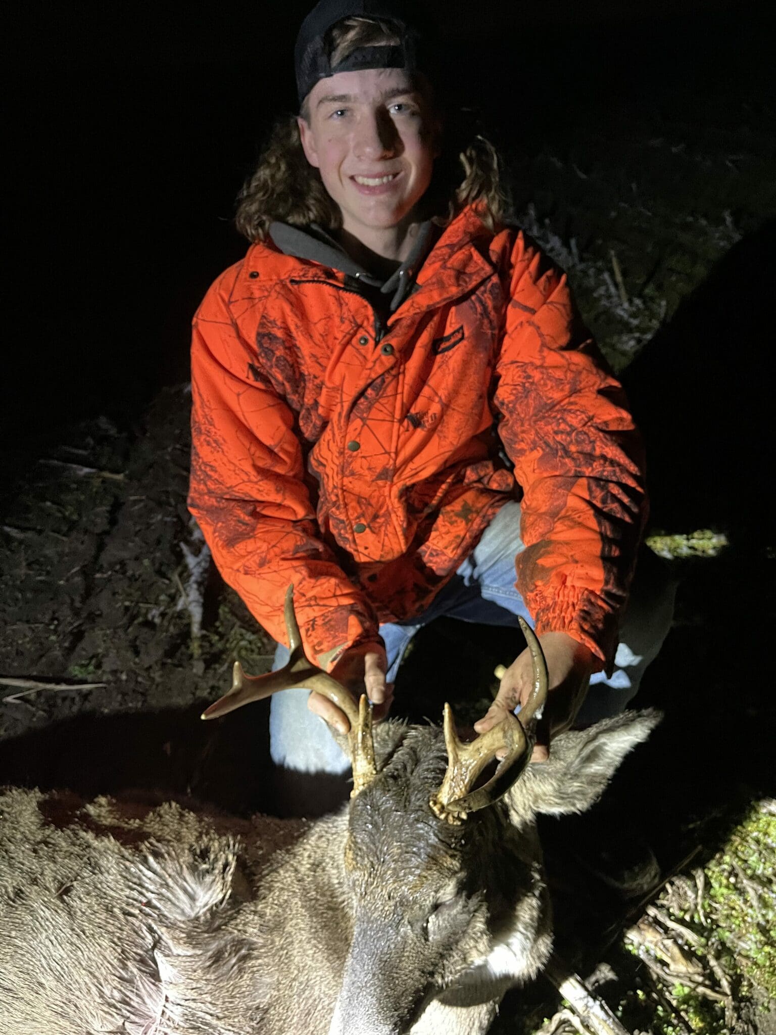 Got out a little late, but didn’t want to miss the opportunity. Got out as quiet as I could, and sat for about 20 and saw him scraping on a tree and walked out and turned perfectly at 50 yds
