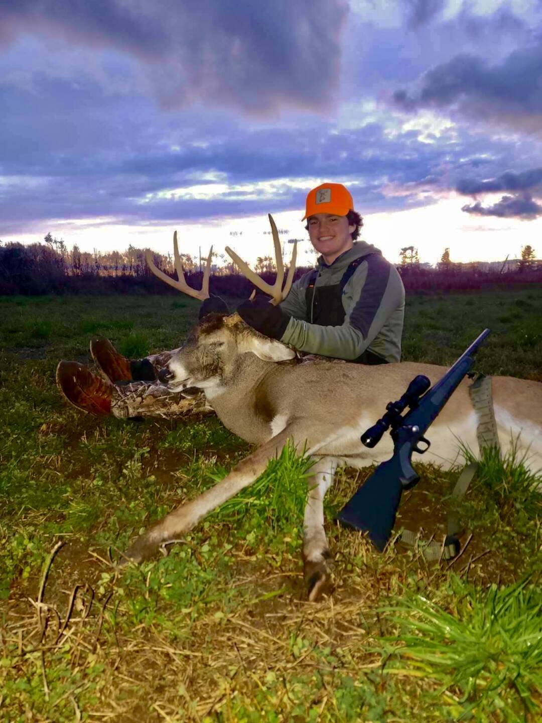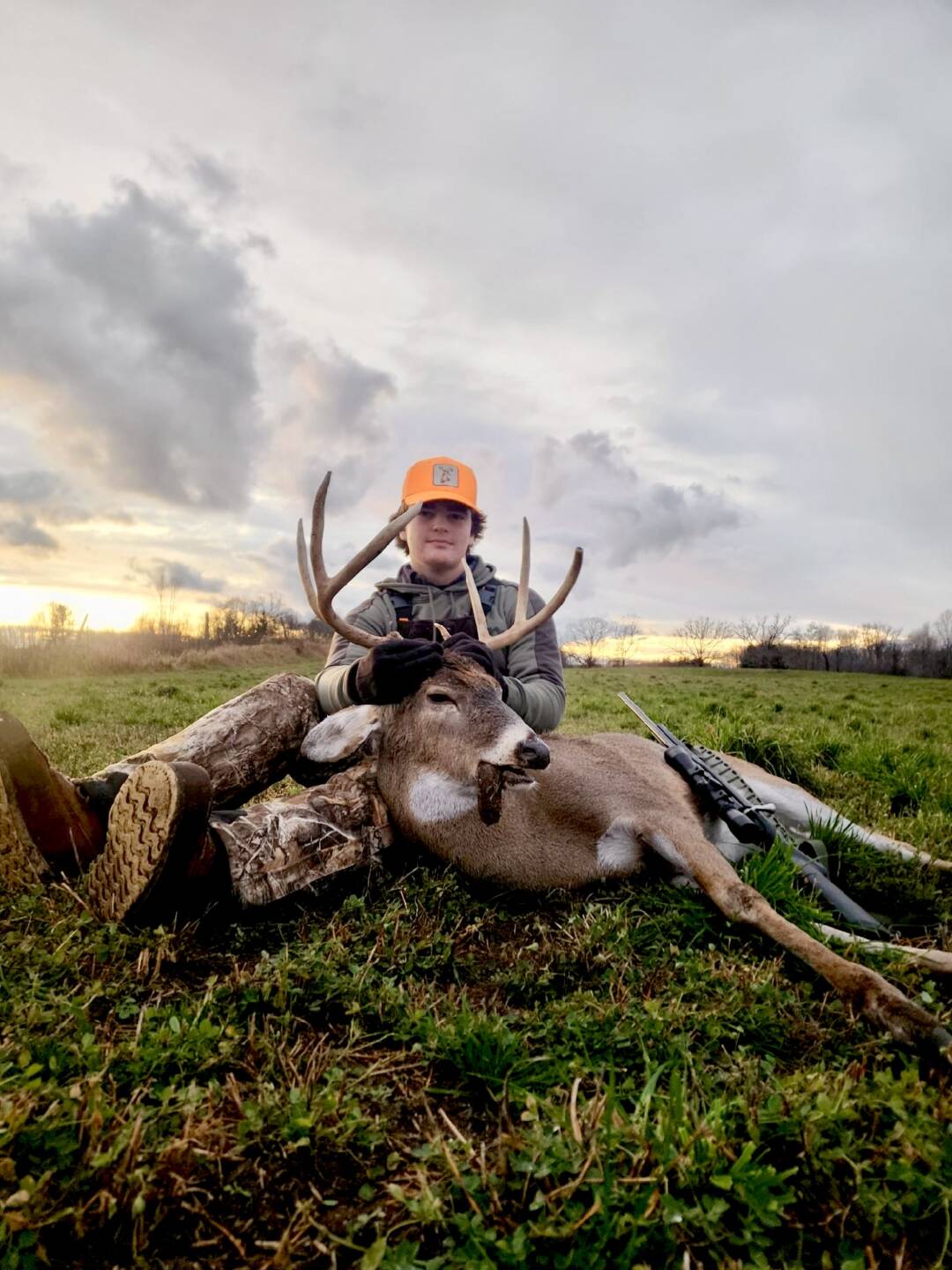 He came out after some does before dark. The first time I shot was a click and a blank. I got myself back situated and was able to take him at 170 yards. He ran about 45 yards and piled up in the feild with a double lung shot. Second buck ever taken!