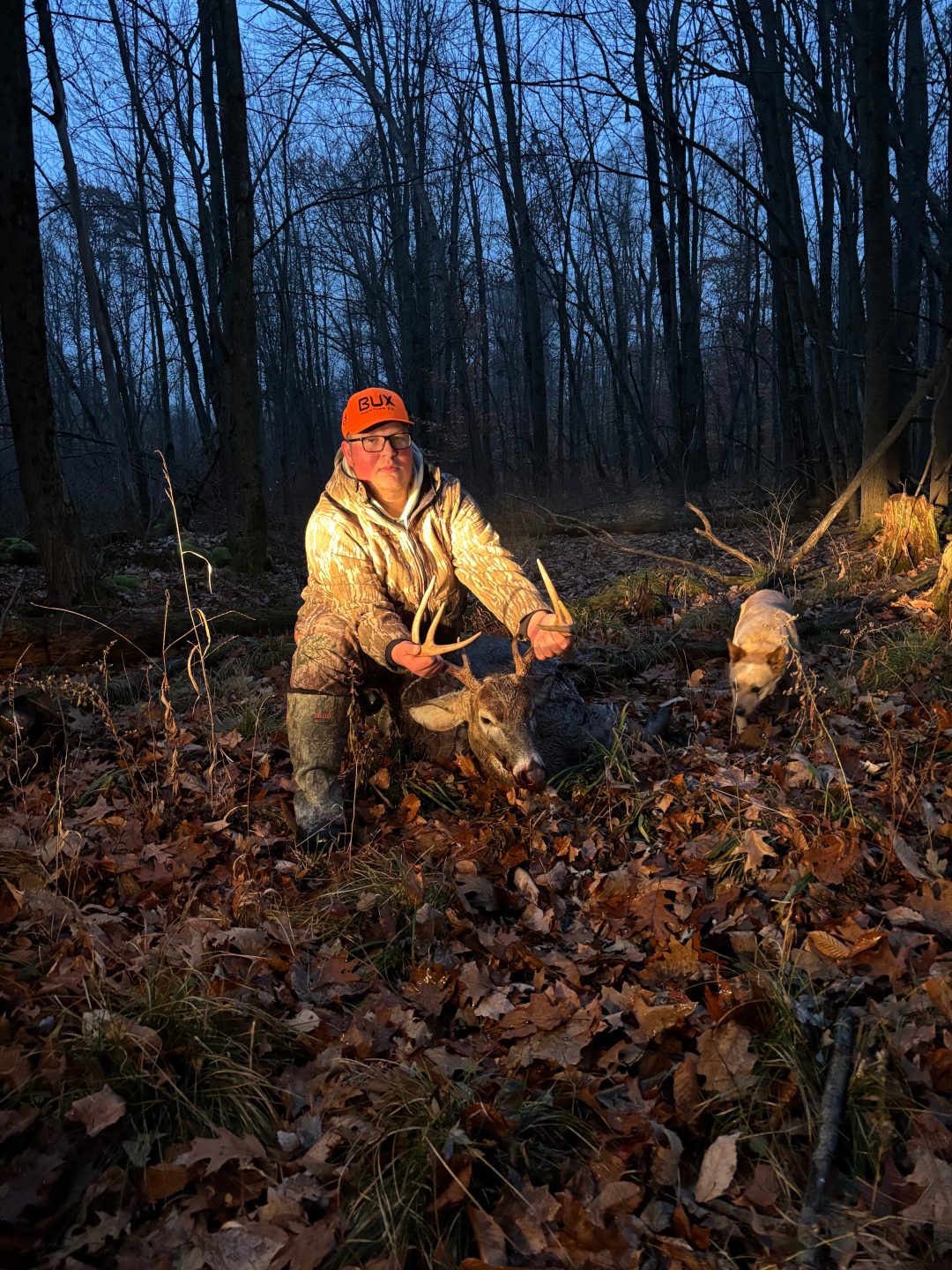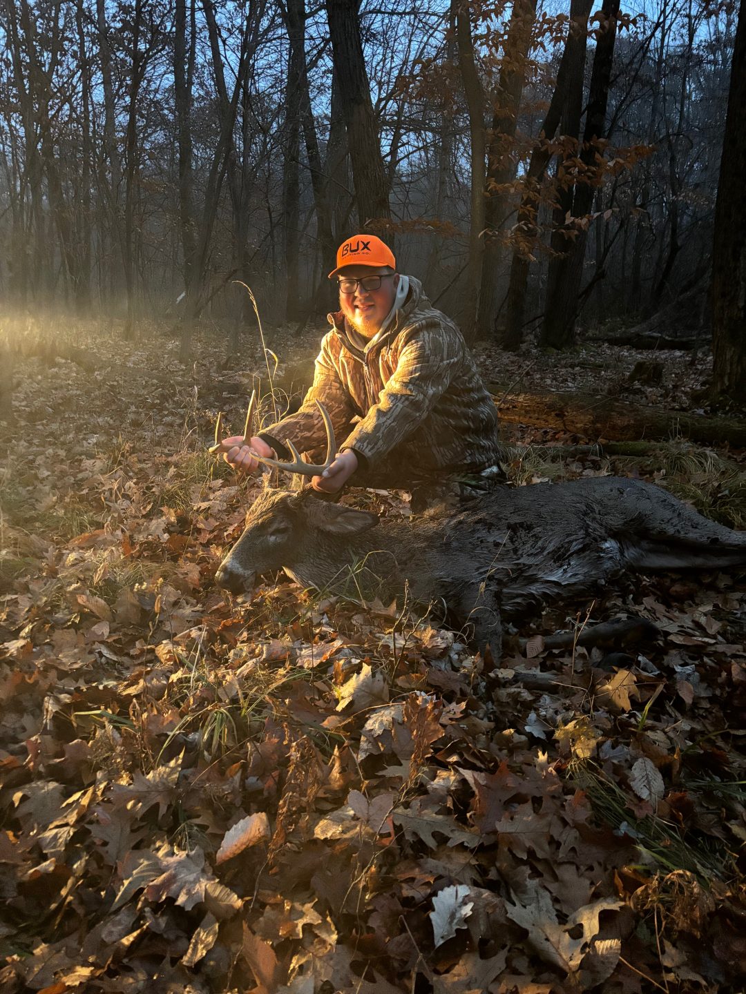 Went out around 2:45 pm. Had been sitting there for 15 minutes when I saw a deer heading my way. I waited till I could get a good look at the deer and noticed it was a buck that I had gotten on my cell camera a couple days ago.I waited till I got a clean angle on him and shot when he was about 80 yards away. He turned and ran. I thought I hit him good so I went to look for blood. Couldn’t find a drop so I went back to my blind. Then I realized I was looking in the wrong spot and went back out to check. Found good blood and tracked him 60 yards through the swamp.